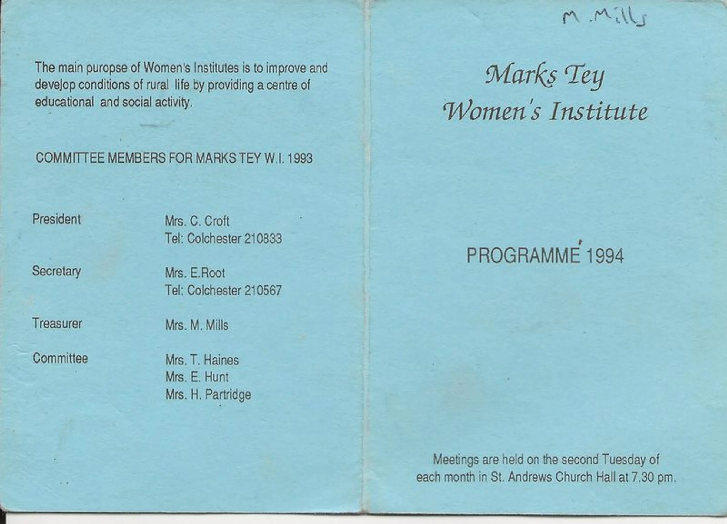 Marks Tey WI, Programme for 1994