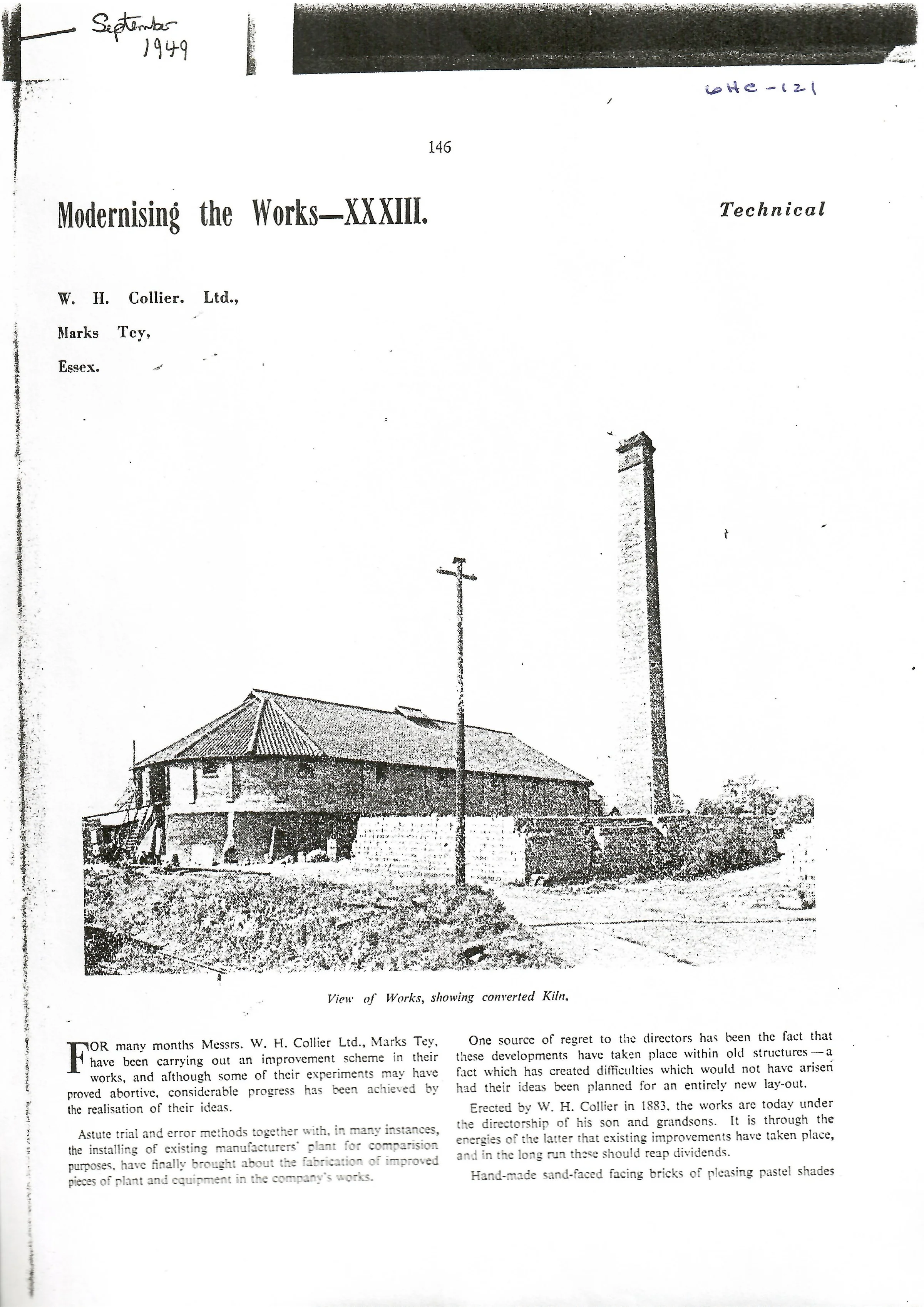 Magazine article describing modernisation work at W H Collier brickworks and a description of the brick making process.