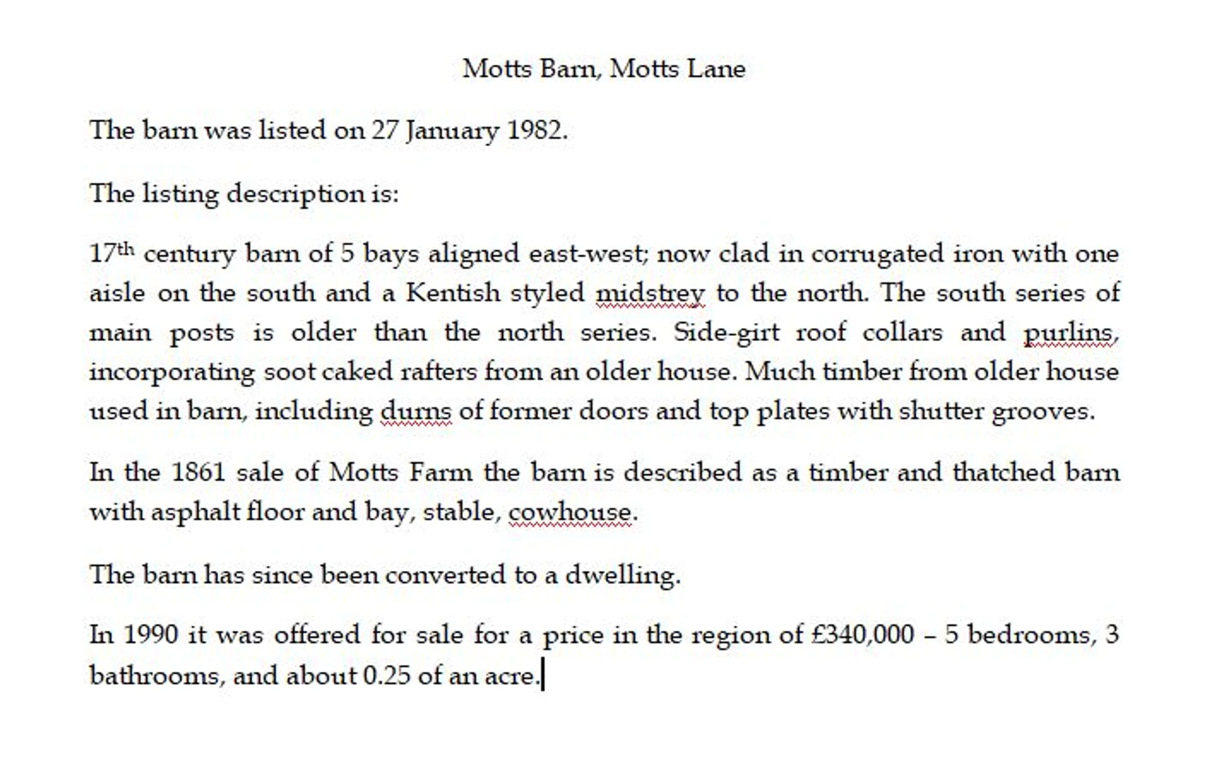 This is information about the history of Motts Barn, a barn conversion.