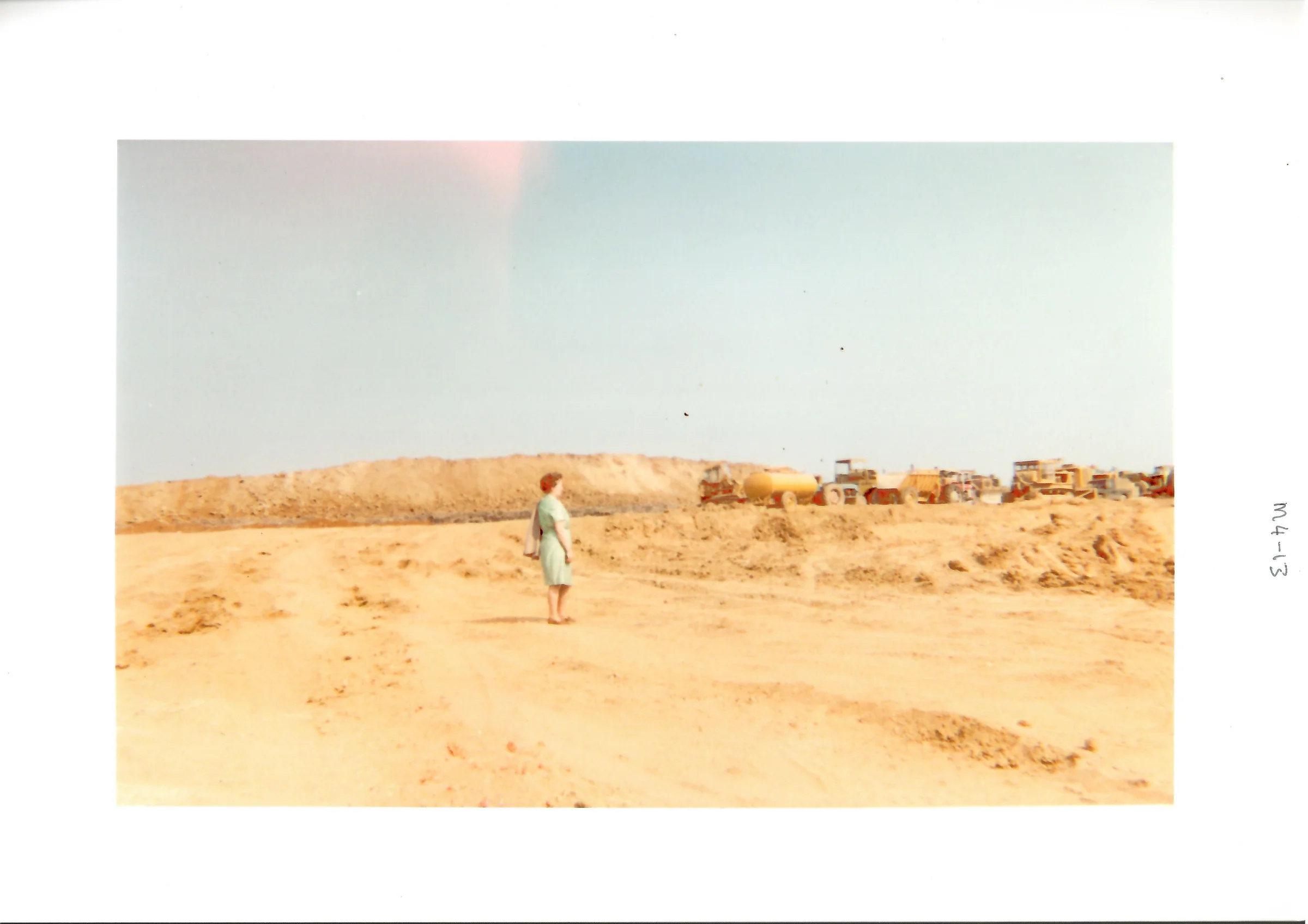 Photograph of Mrs Polley observing construction of the A12.