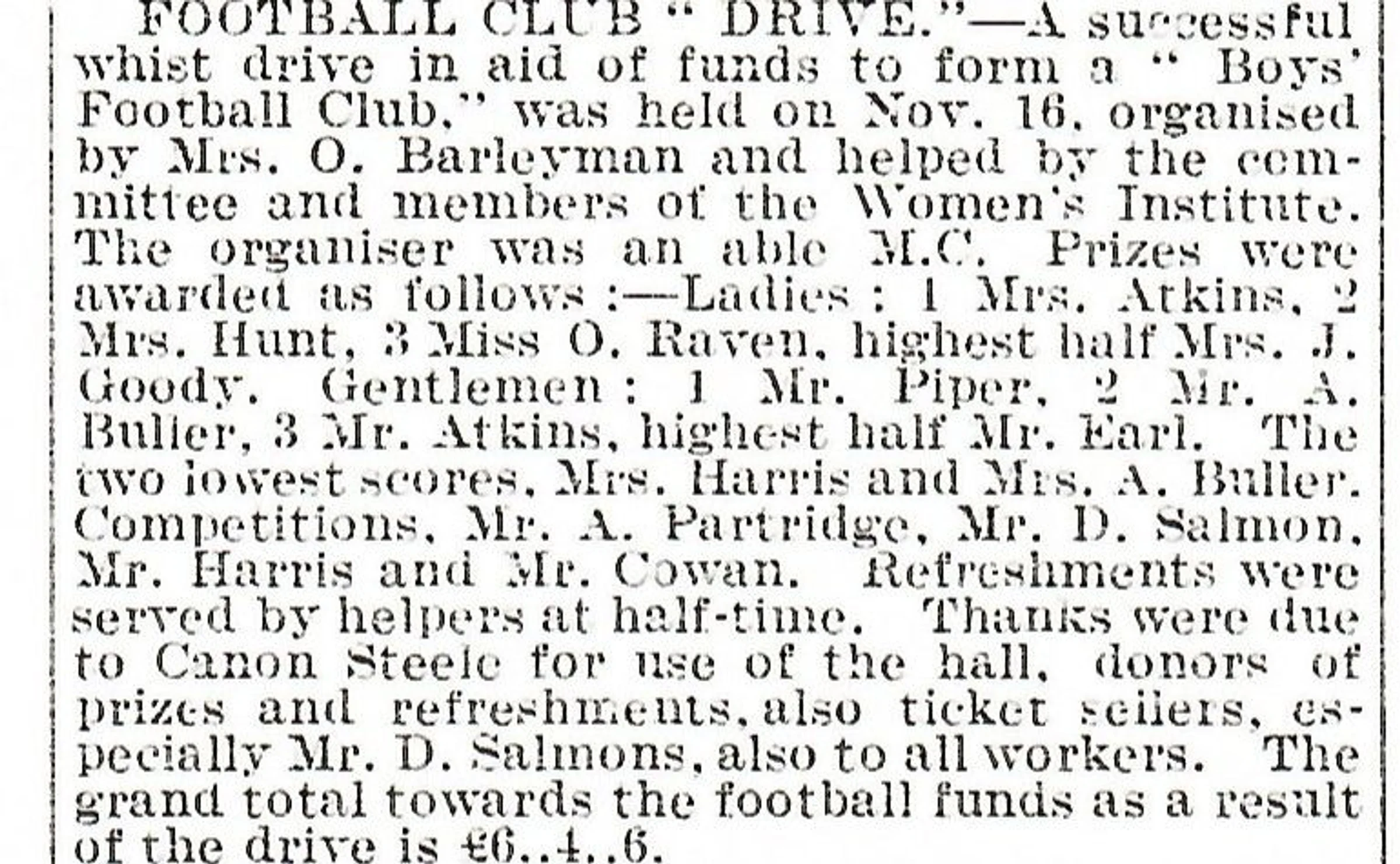 Newspaper report of the Football Club "Drive".