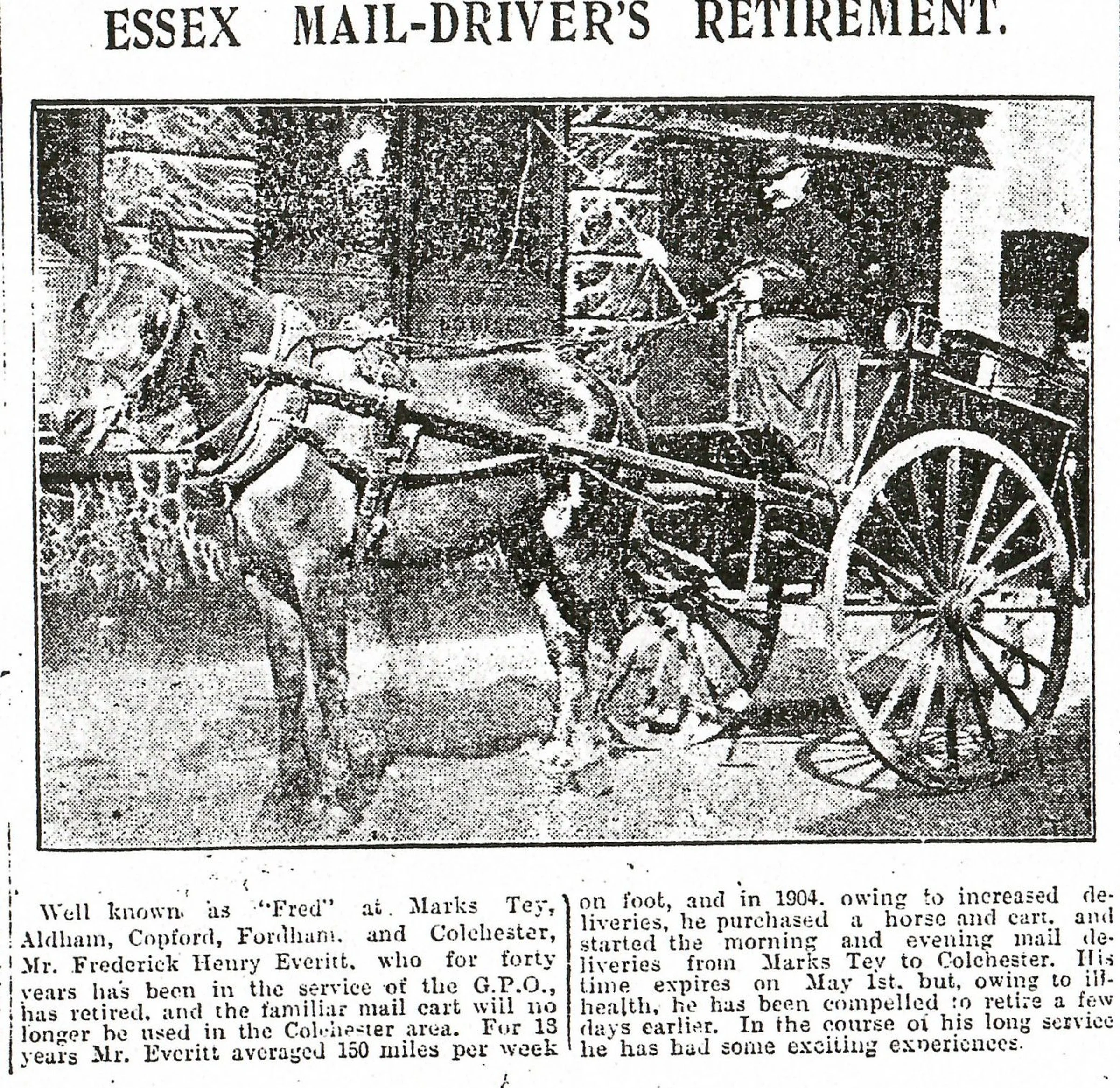 Newspaper photograph and report regarding the retirement of postman Frederick Henry Everitt.