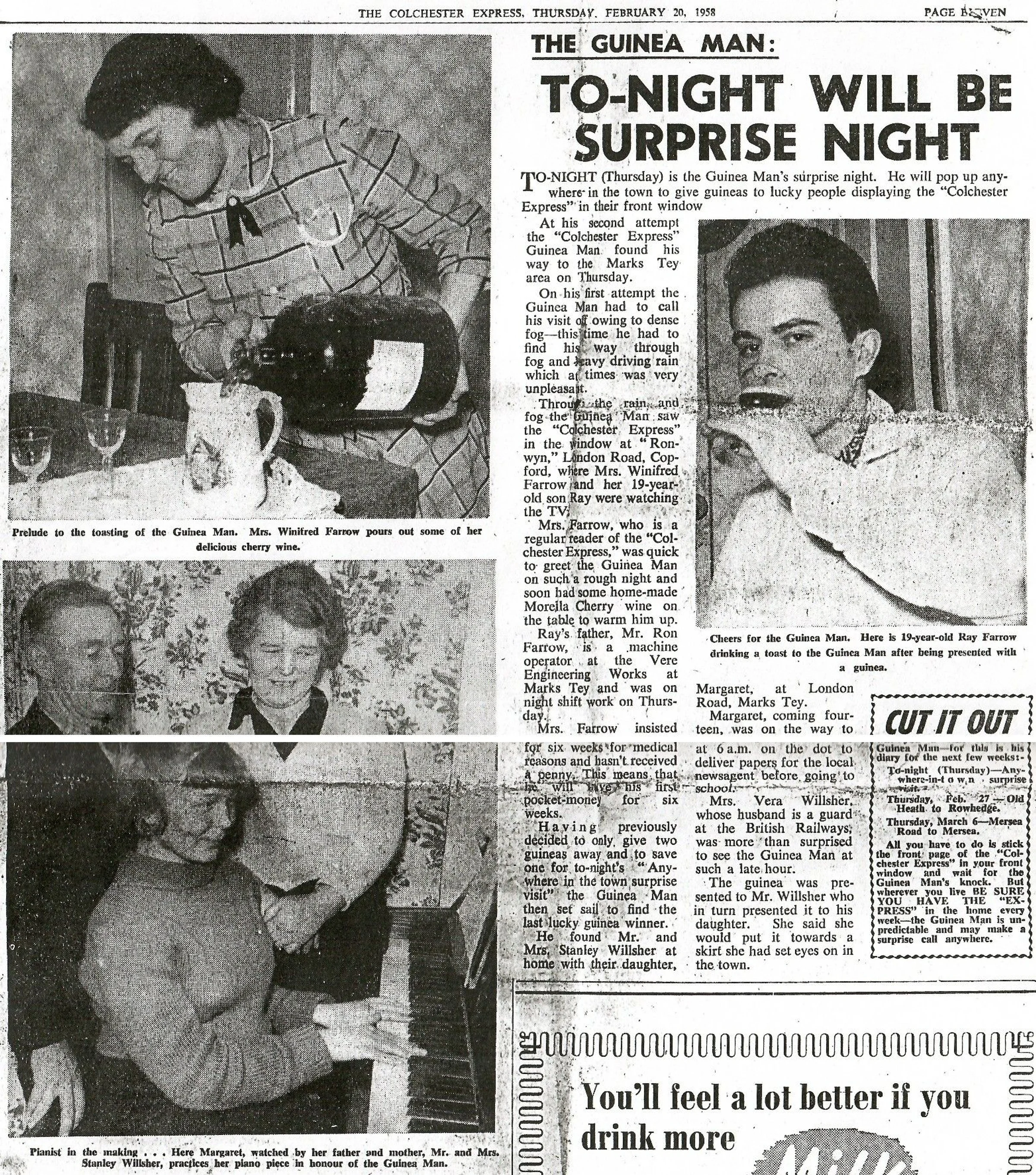 Newspaper photograph and article regarding the visit of the Guinea Man to Marks Tey.