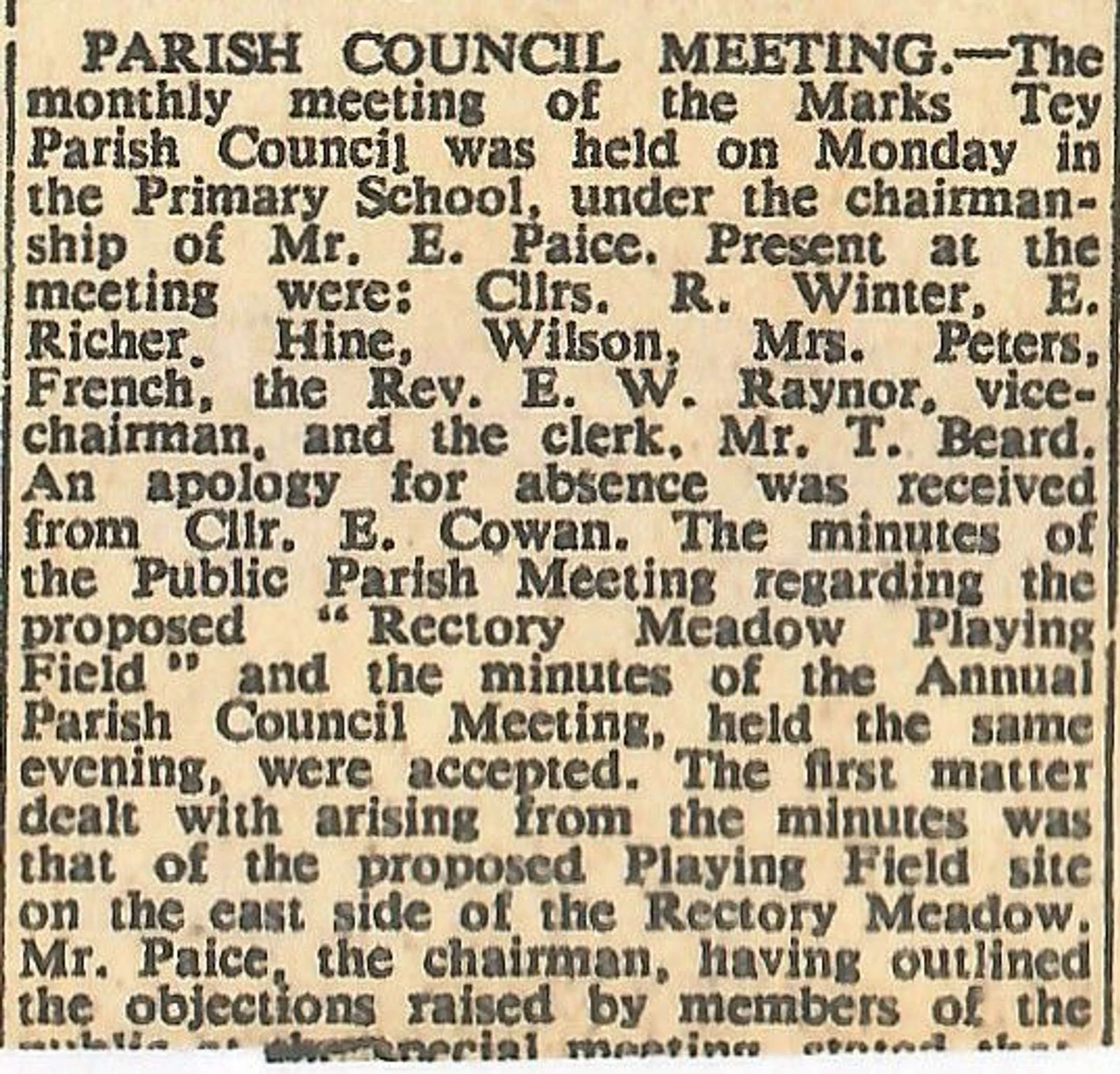 Article reporting on the meeting of the Parish Council.