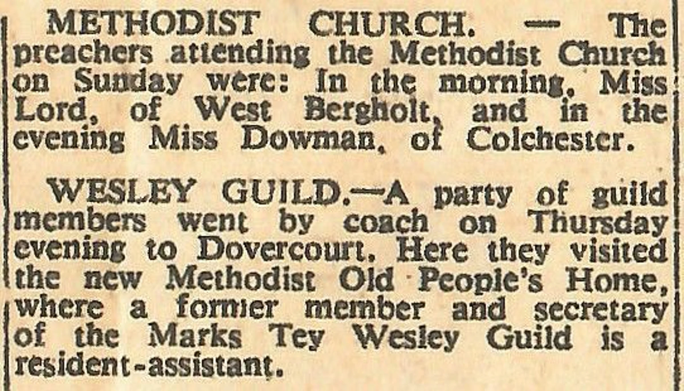 Village news column reporting on the Methodist Church and Wesley Guild.