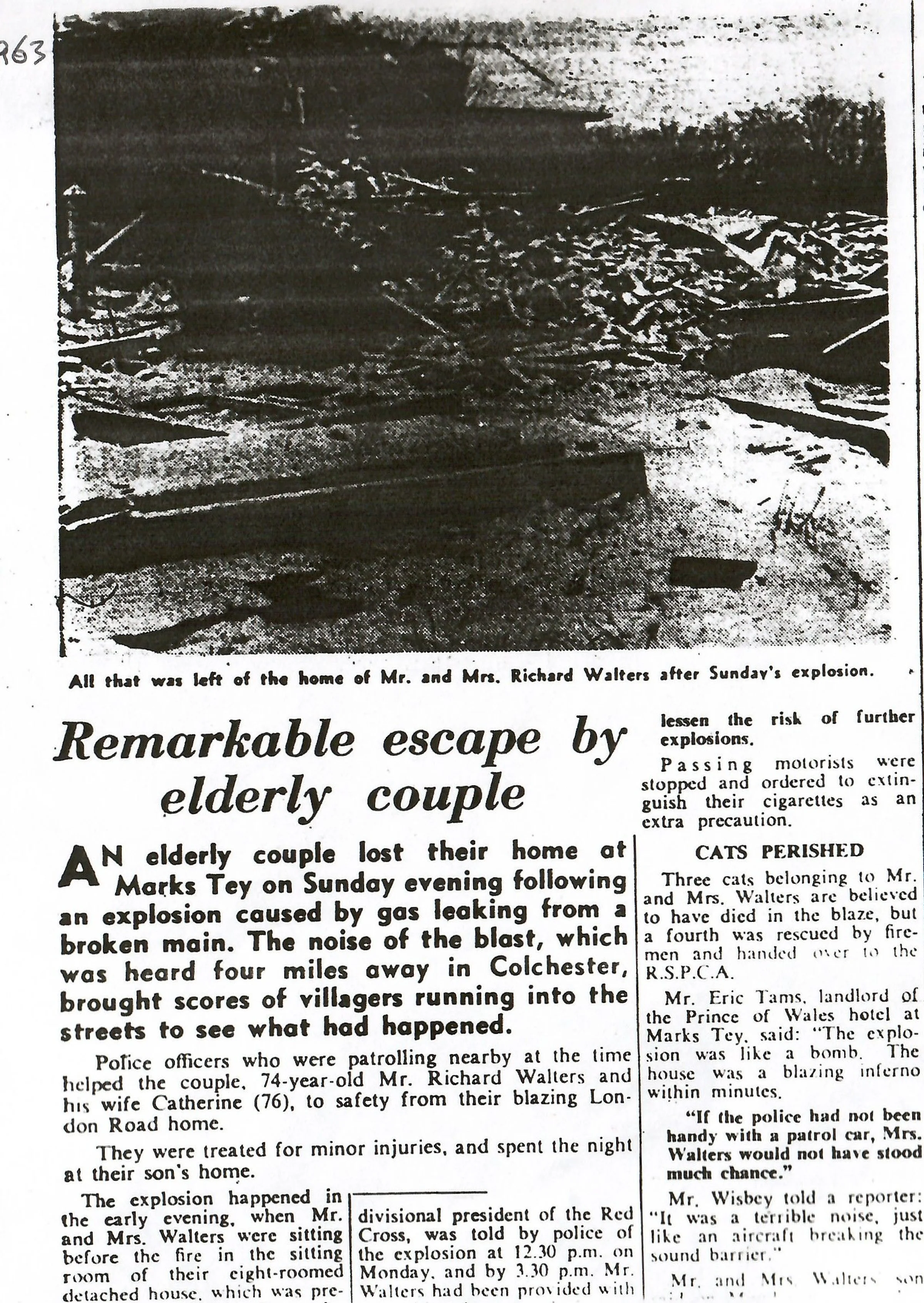 Newspaper photograph and article regarding the fire at the former telephone exchange.