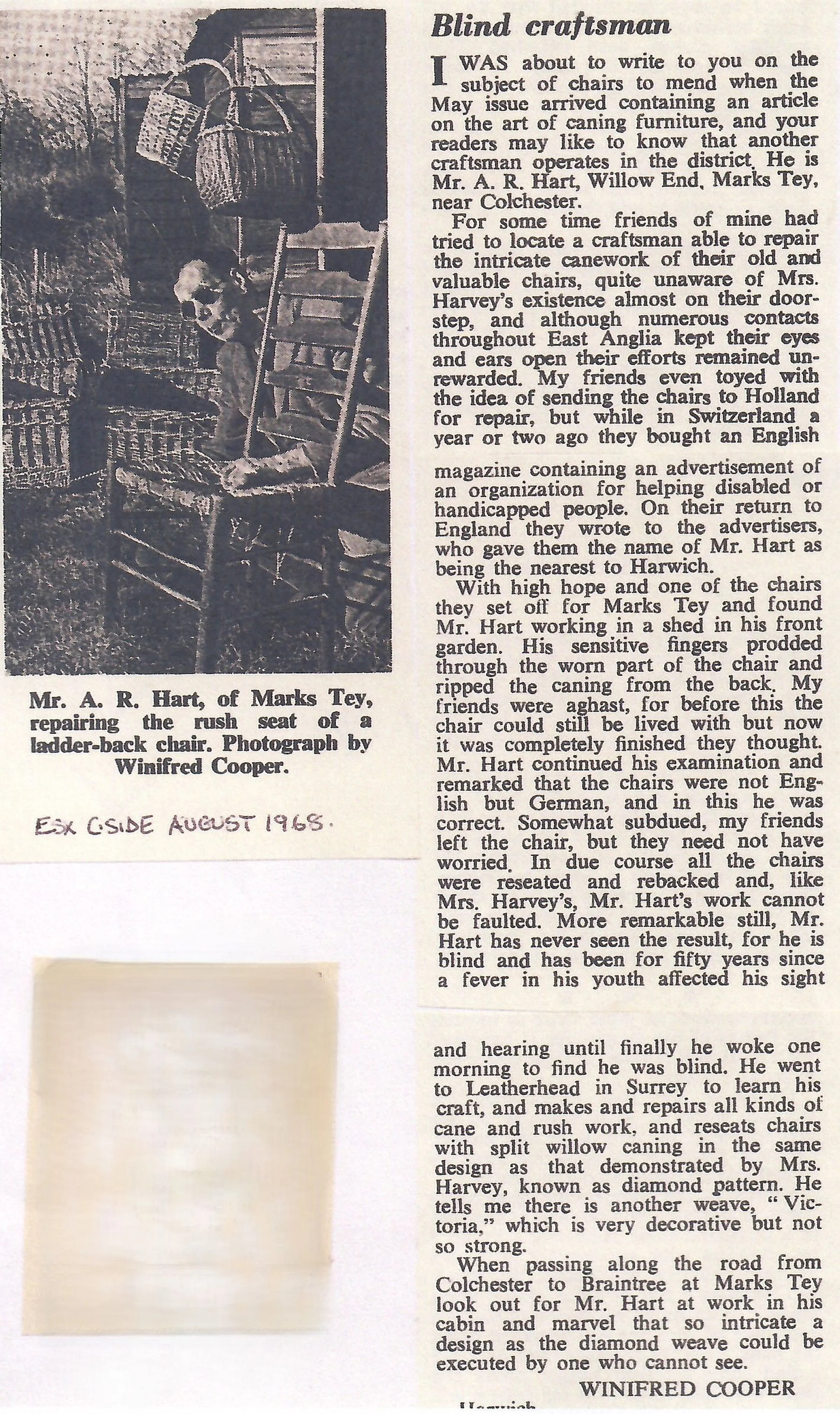 Newspaper photograph and article regarding Mr A. R. Hart, craftsman.
