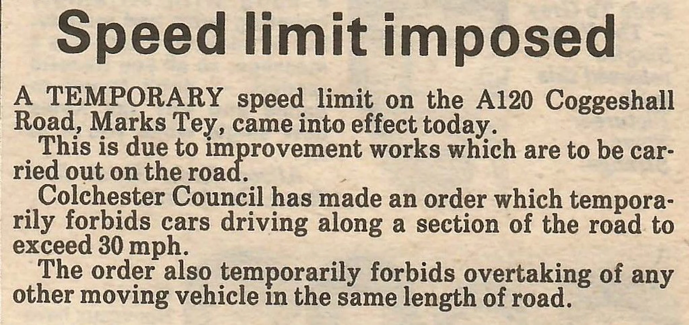 Speed limit imposed