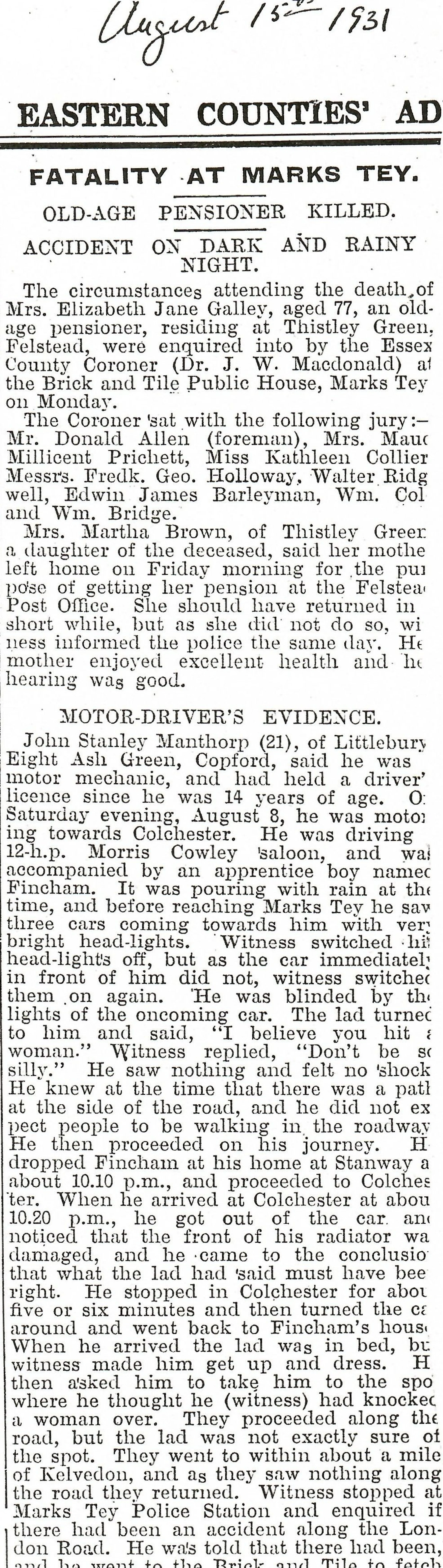 Fatality at Marks Tey