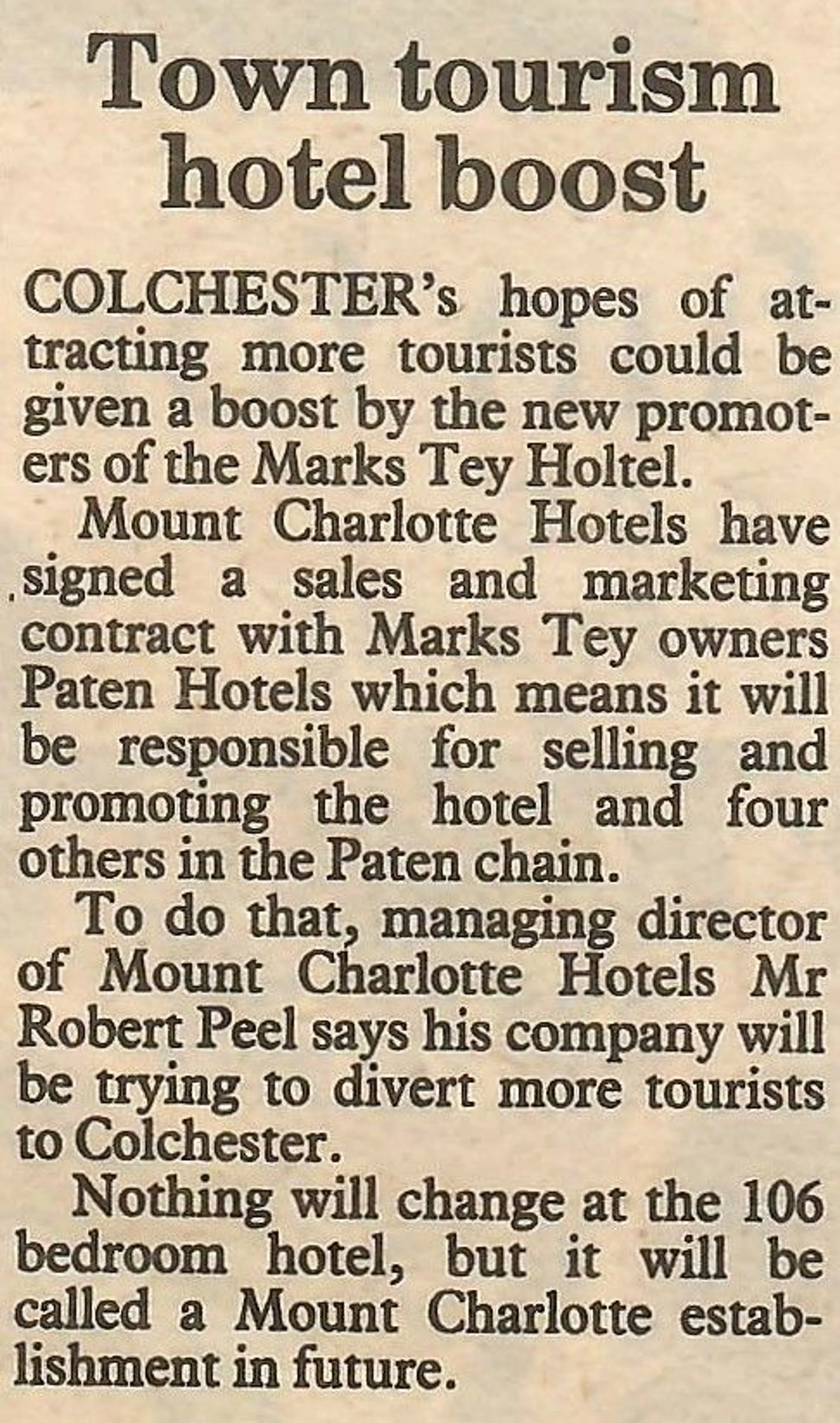 Newspaper report on new promoters of the Marks Tey Hotel.