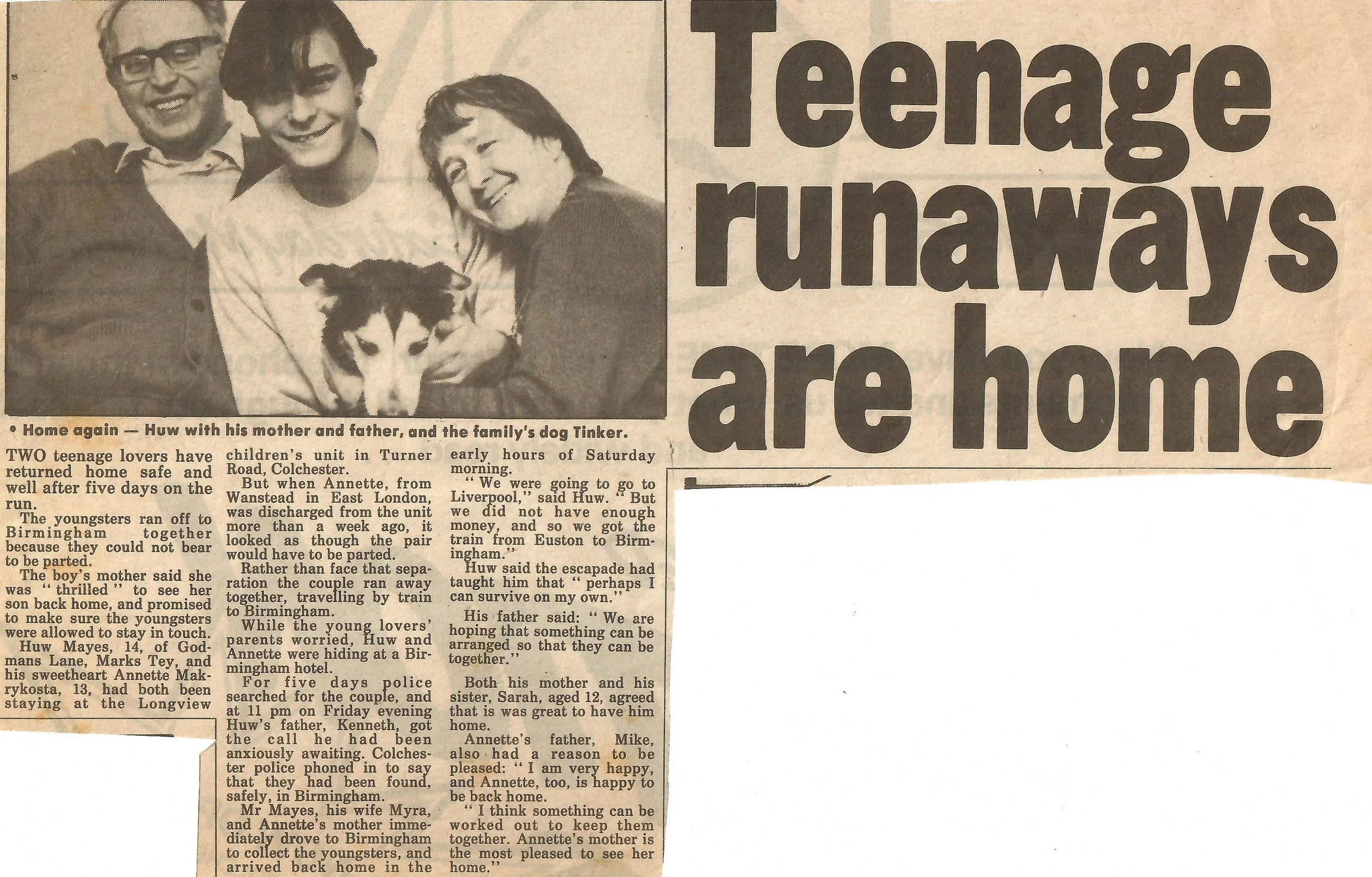 Newspaper photograph and article regarding the return of the two teenage runaways.