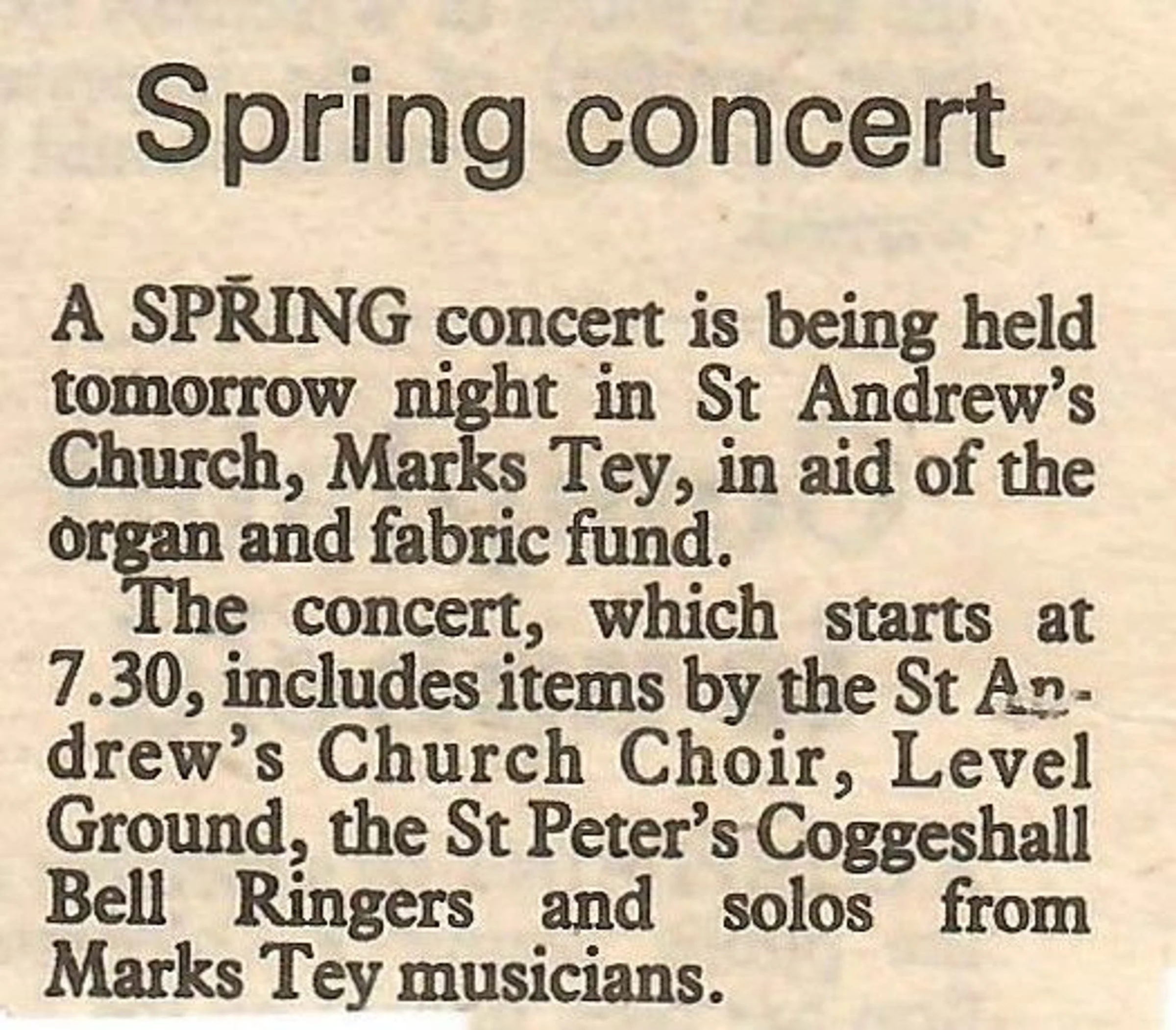 Village news column regarding the Spring Concert.