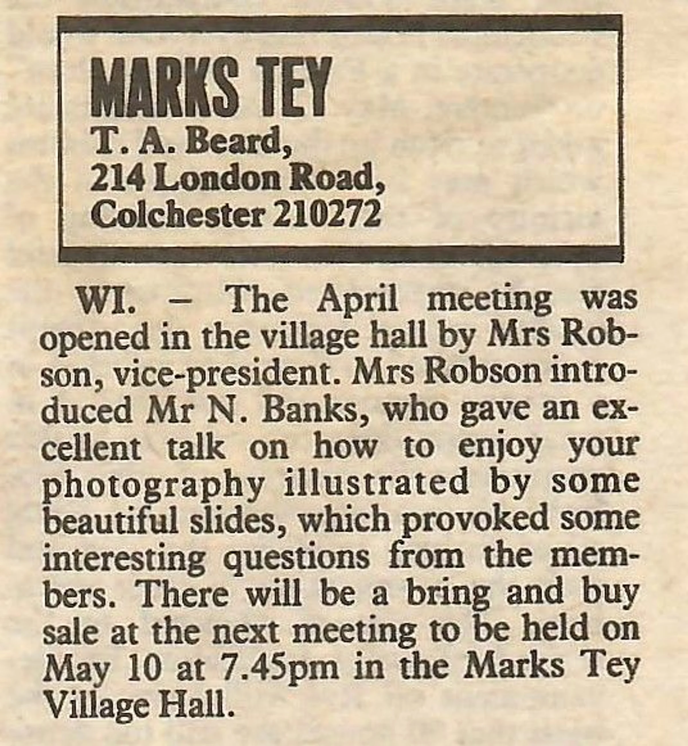 Village news column reporting on the meeting of the Women's Institute.