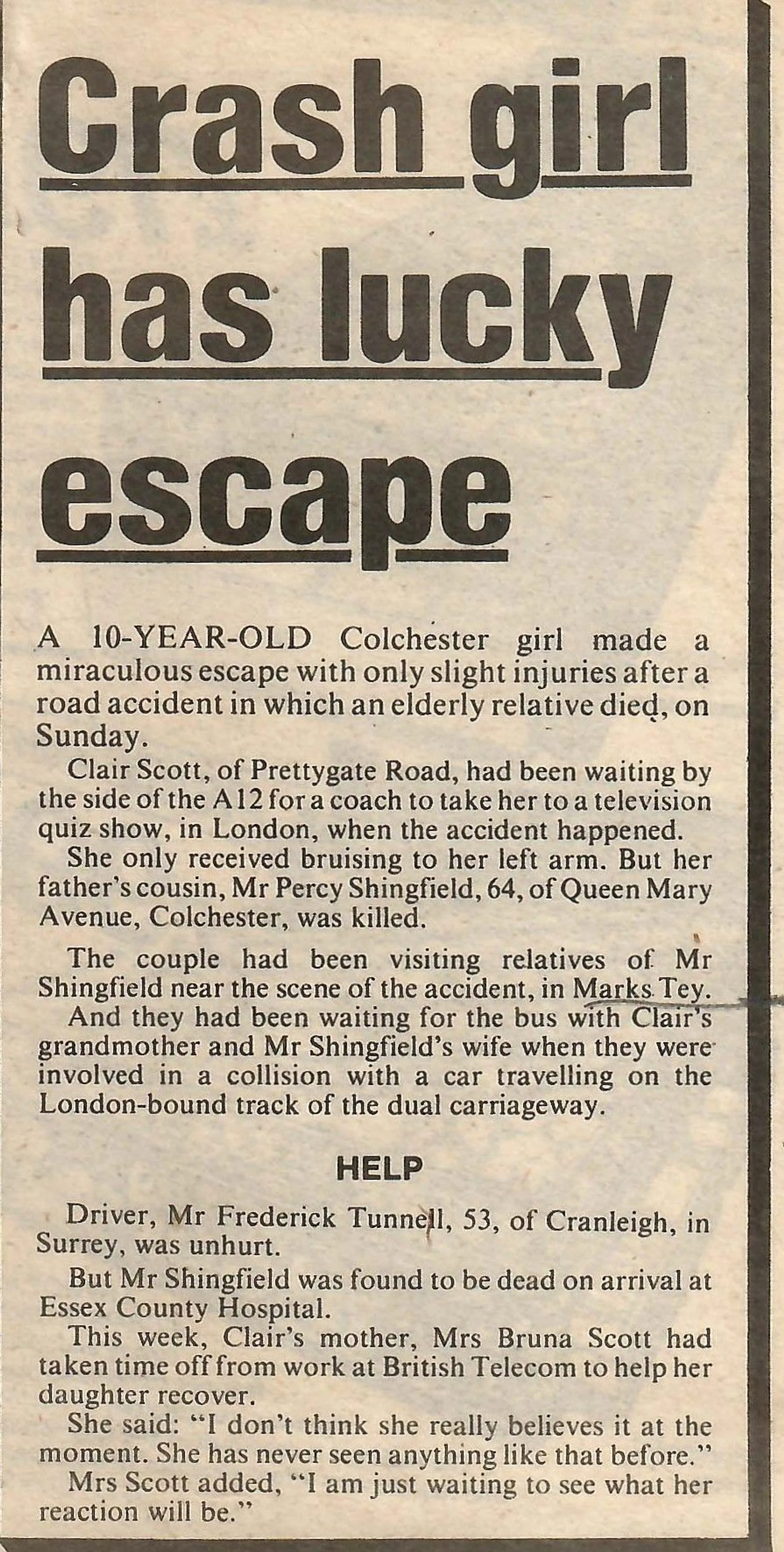 Newspaper report regarding a collision on the A12.
