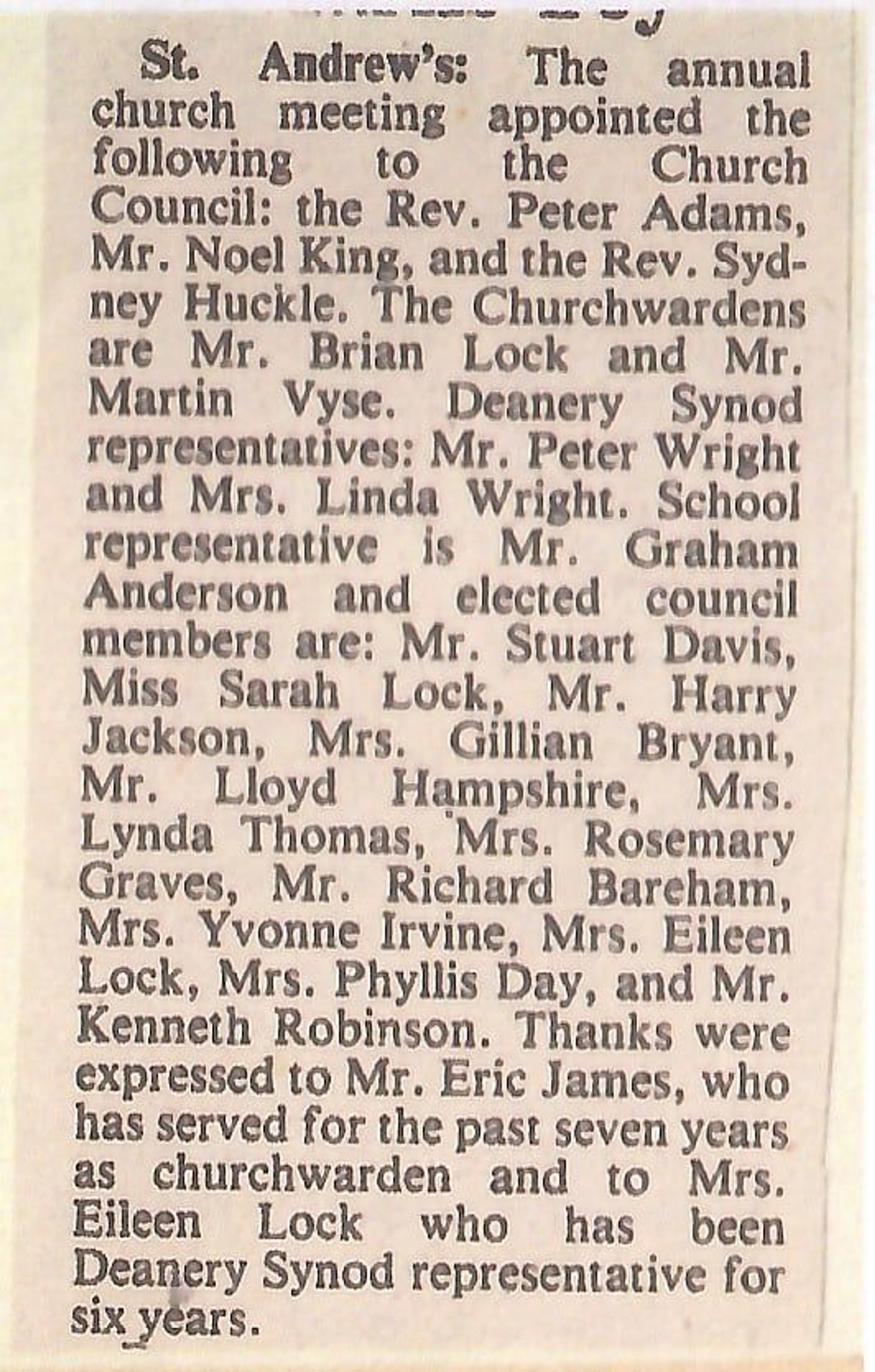 Newspaper report regarding the Annual General Meeting of the Parochial Church Council at St Andrew's Church.