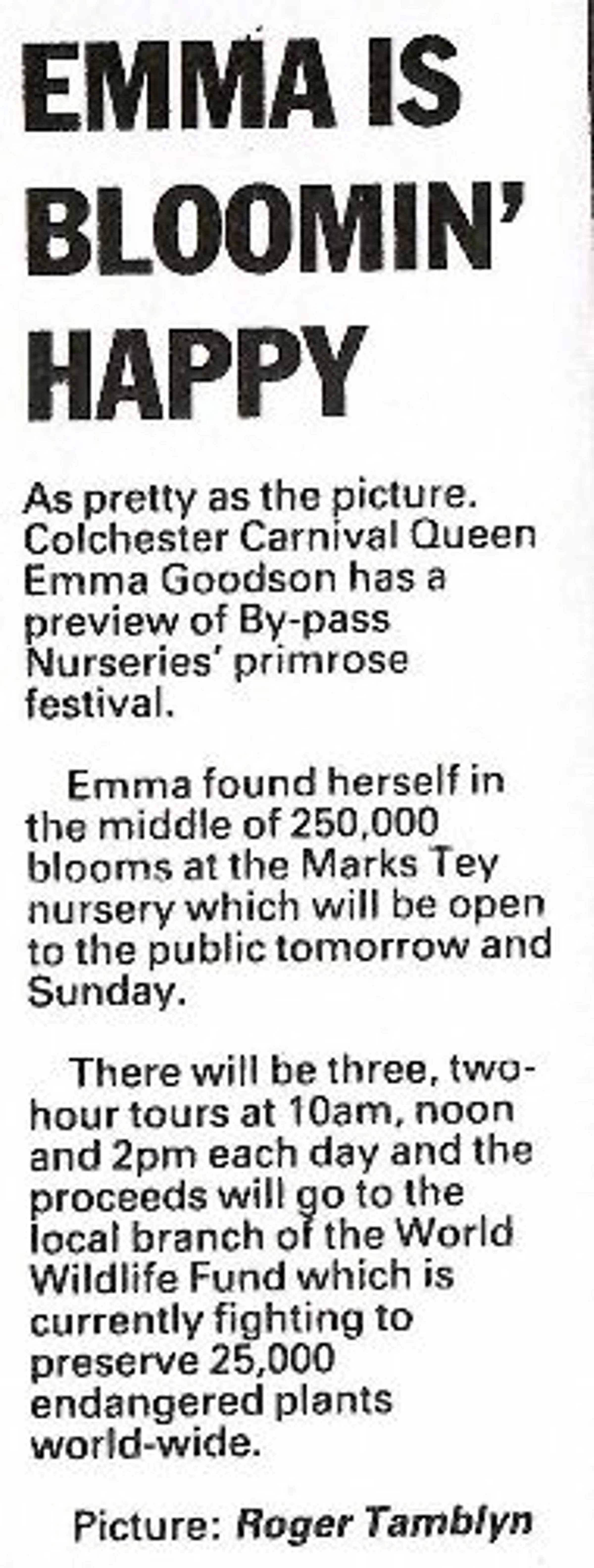 Newspaper report on the By-pass Nurseries' primrose festival.