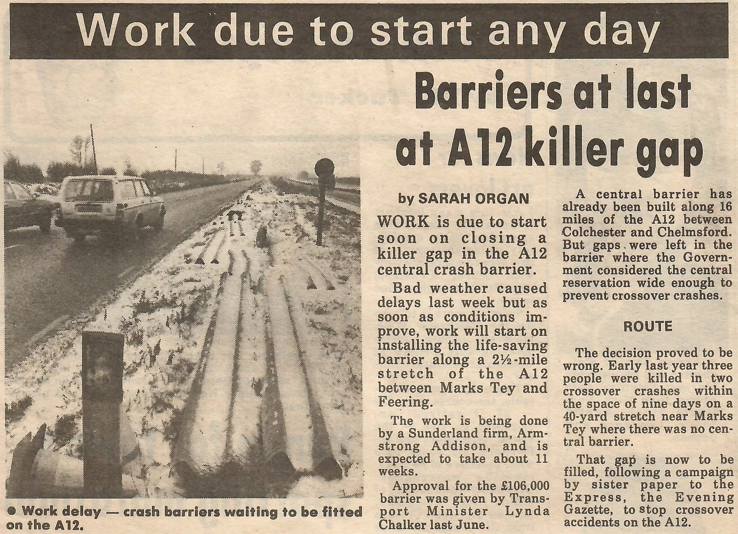 Barriers at last at A12 killer gap