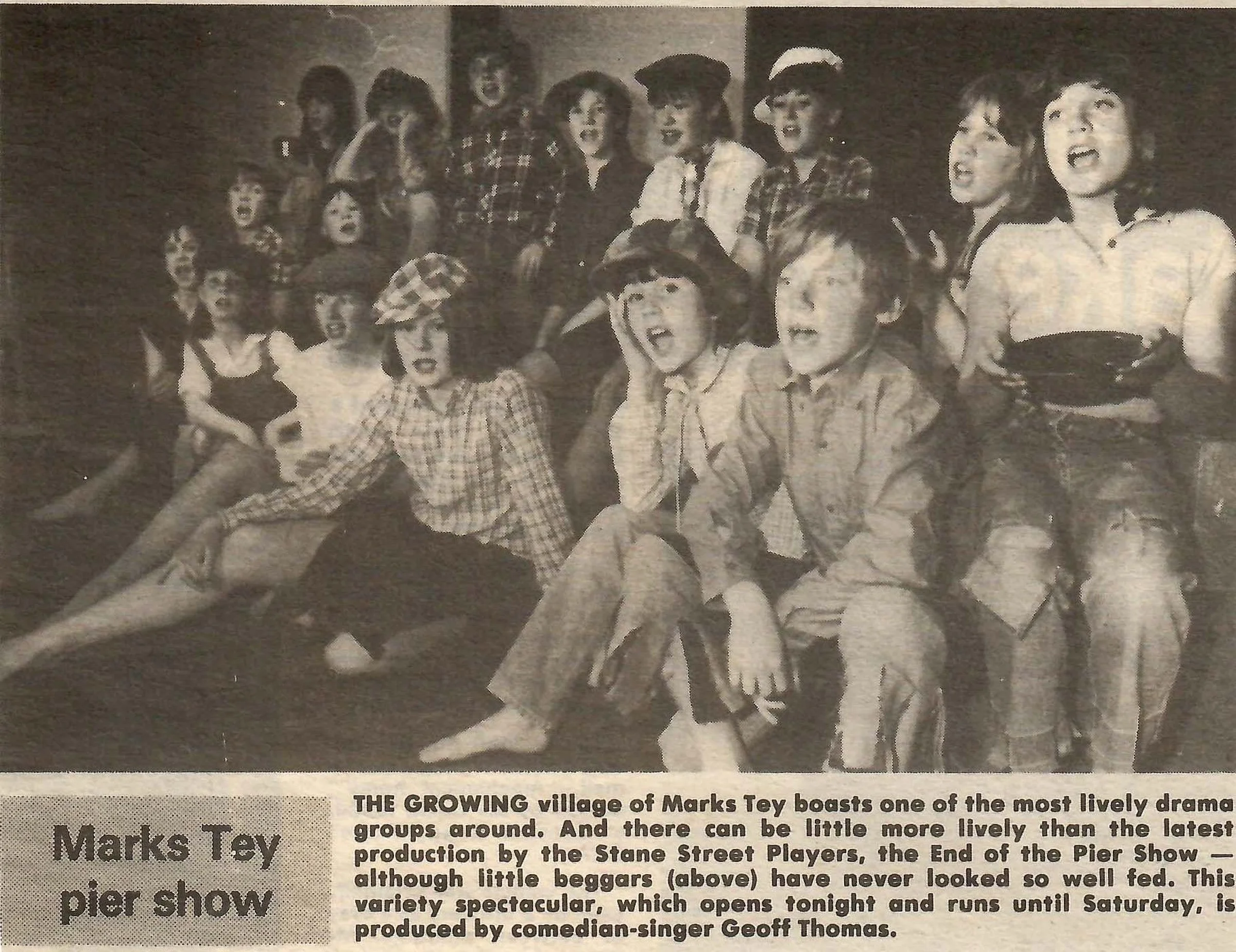 Newspaper photograph and report on the "End of the Pier Show" performed by the Stane Street Players.