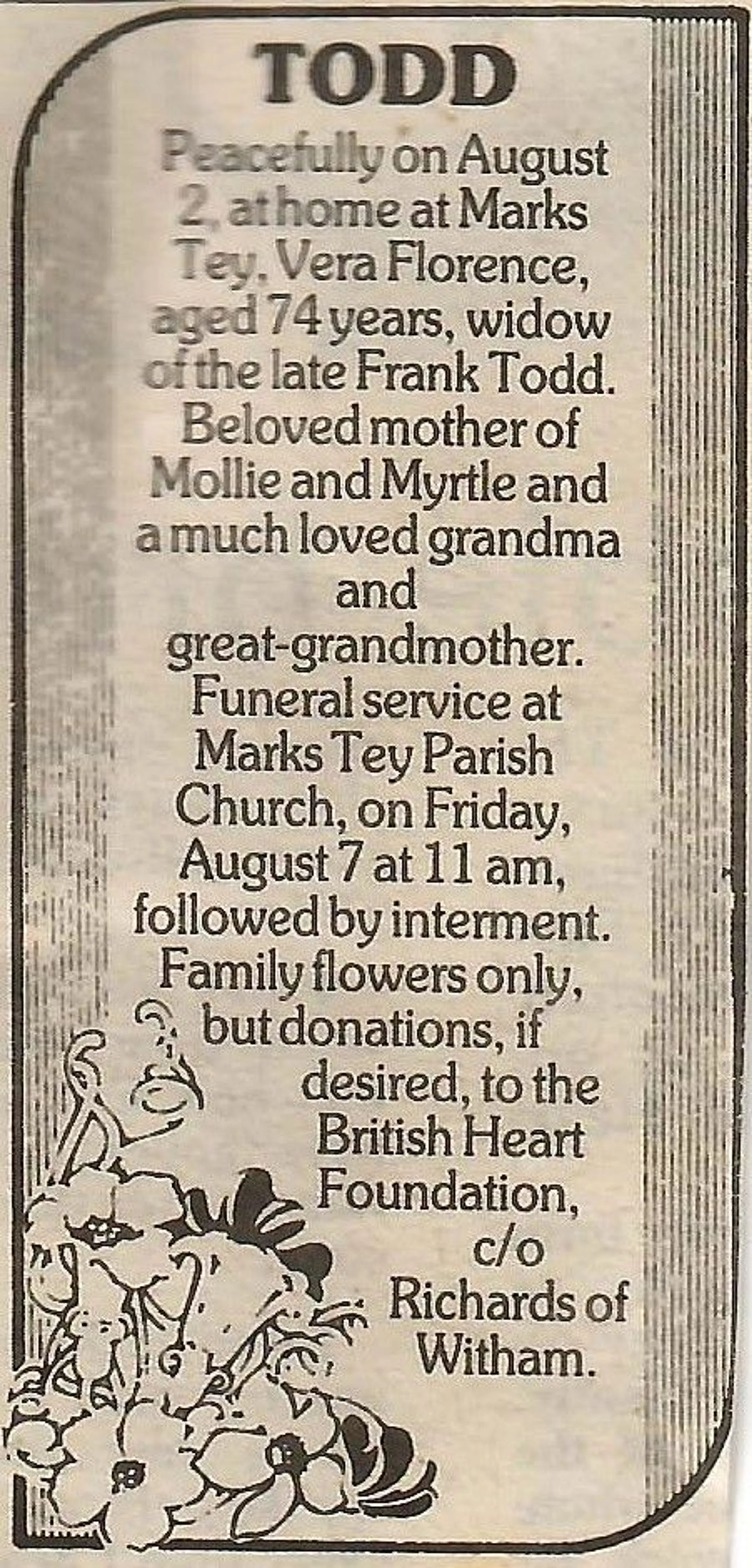 Newspaper death notice.