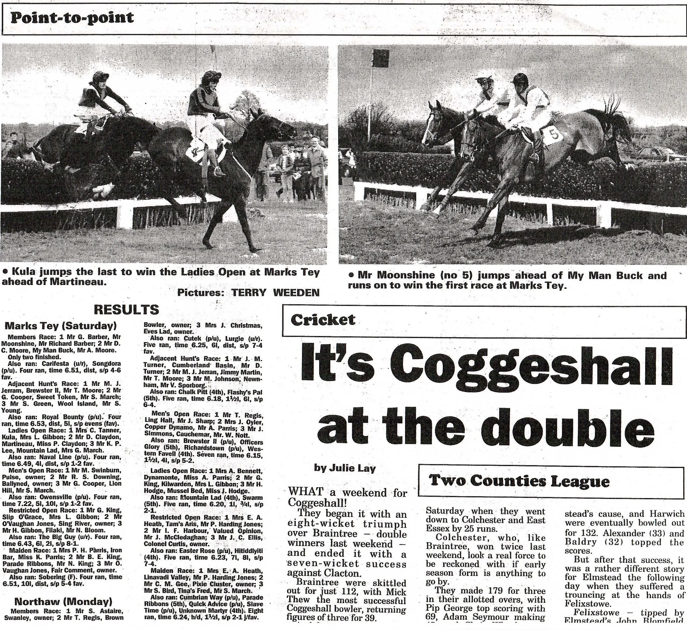 Article on the point-to-point race at Marks Tey Racecourse.