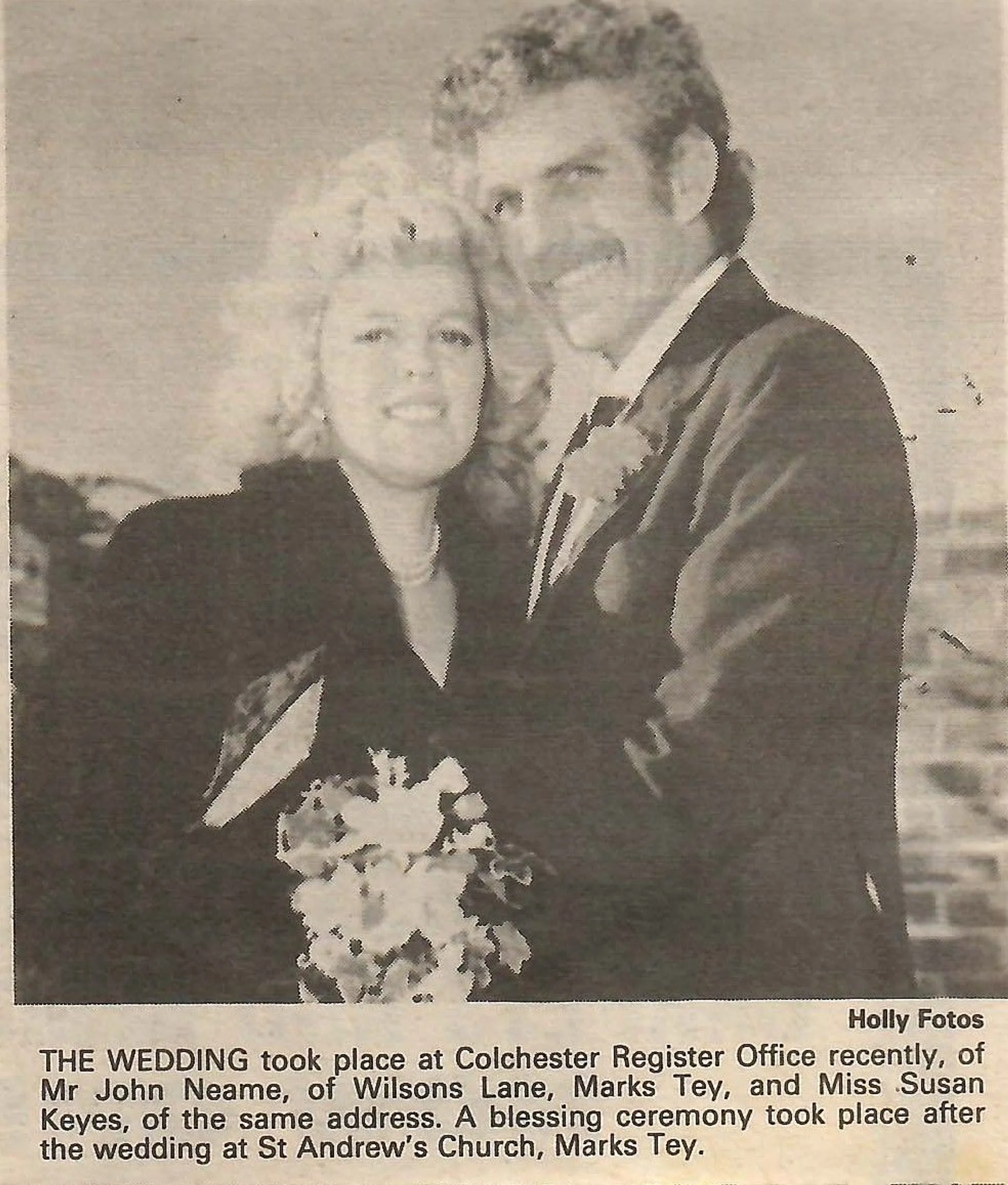 Newspaper wedding announcement, blessing at St Andrew's Church.