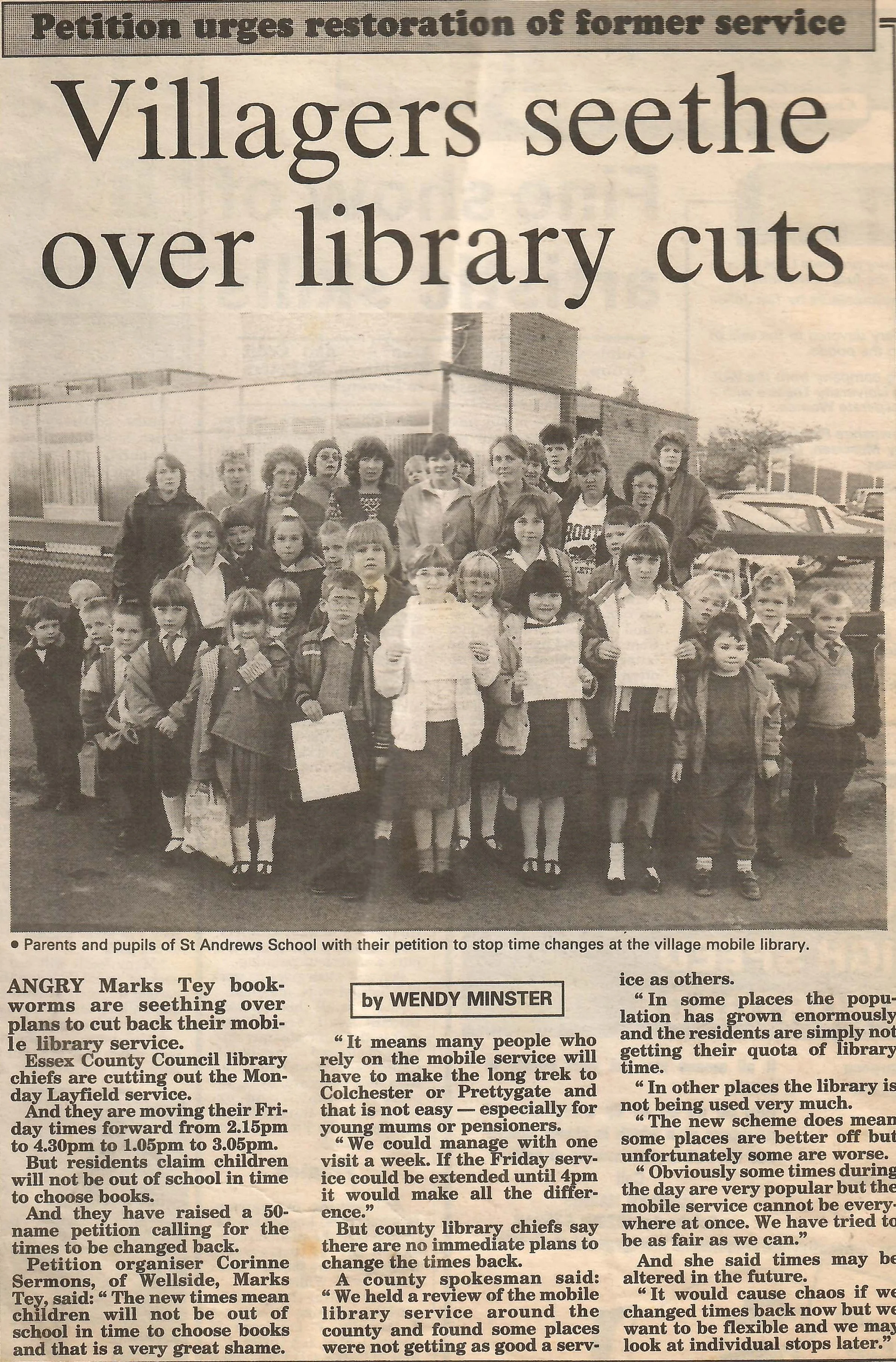 Article and photograph reporting on a petition against proposed cuts to the mobile library service.
