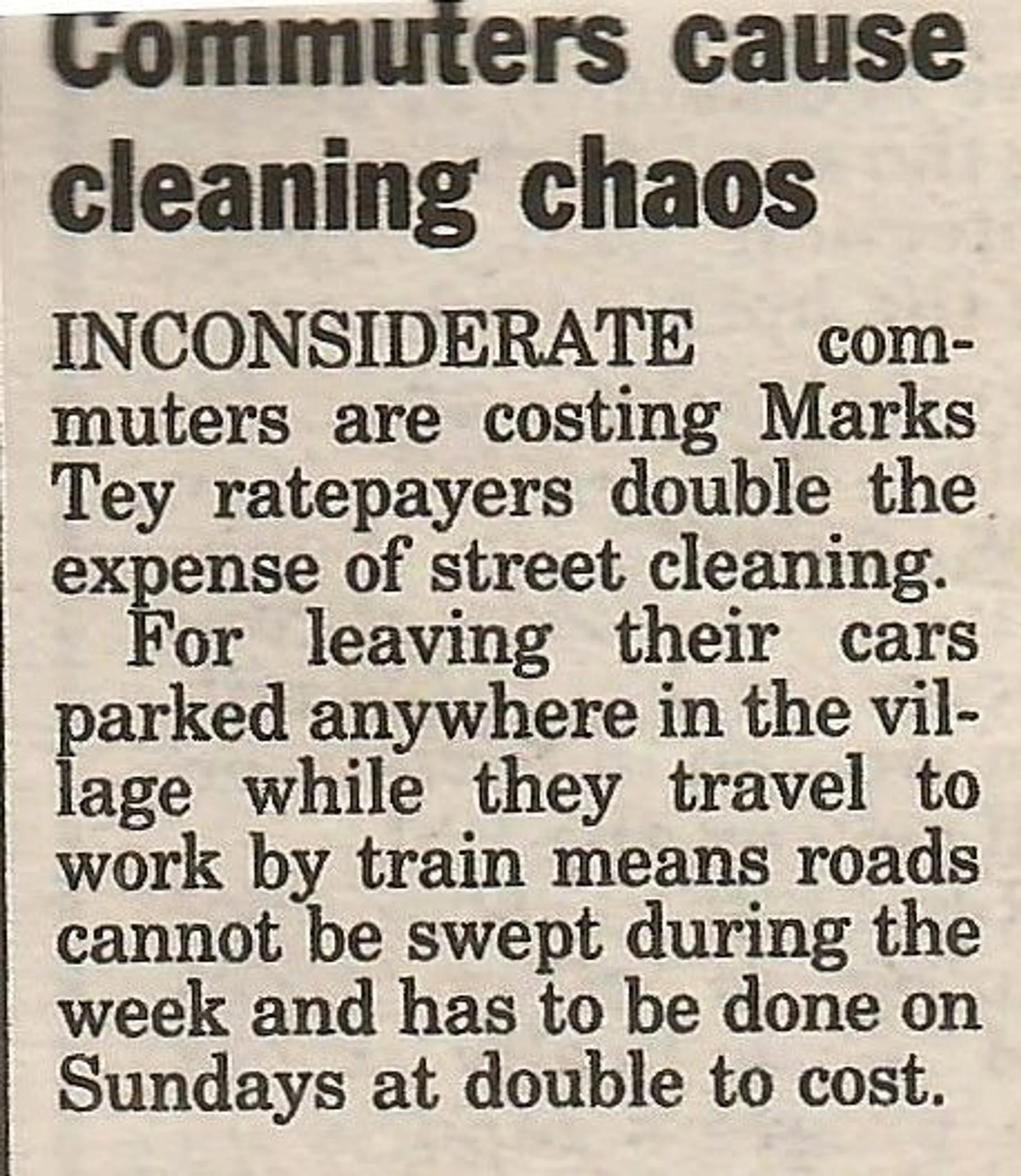 Newspaper report on commuters at Marks Tey station.