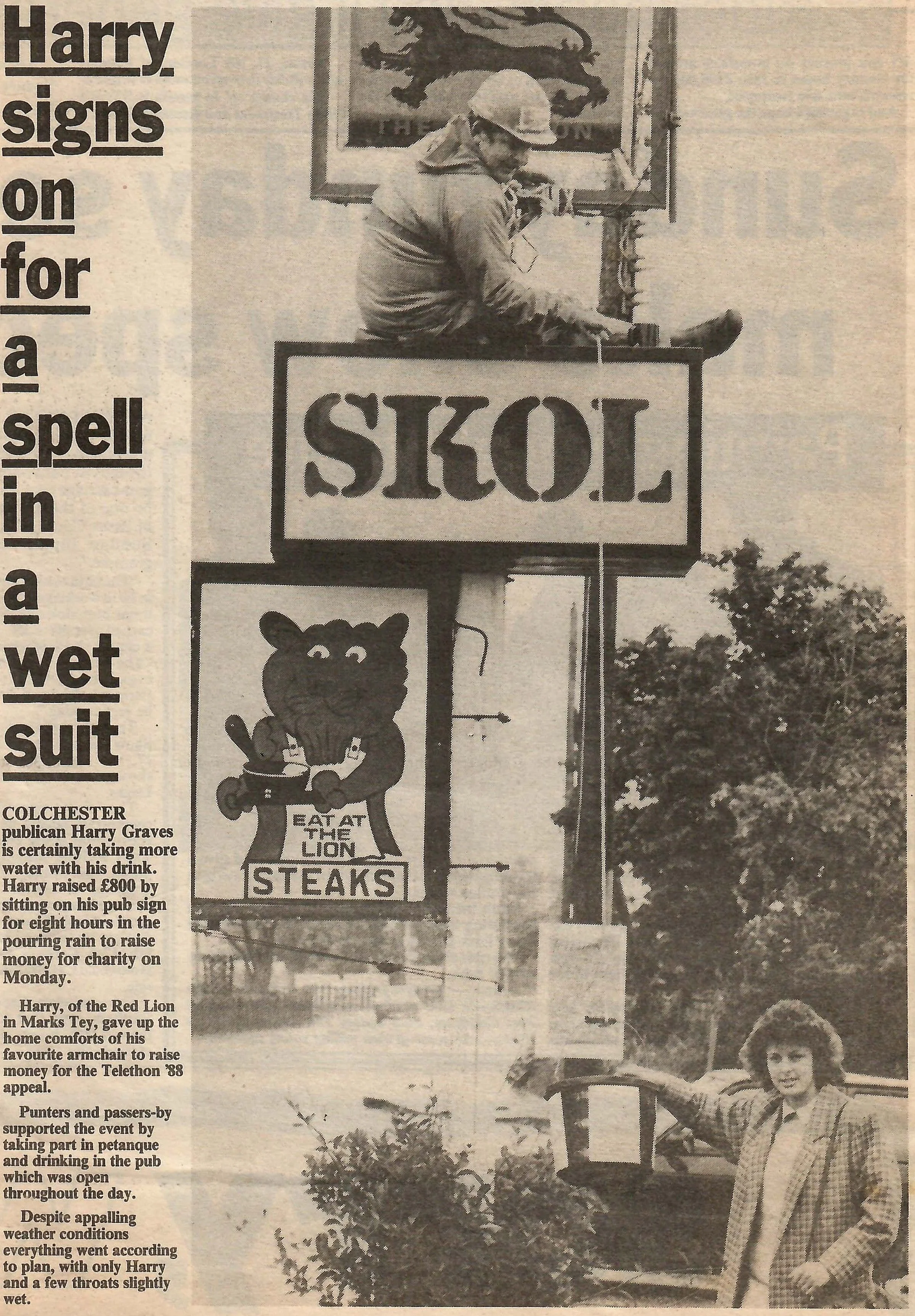 Newspaper photograph and report on a charity event at the Red Lion.