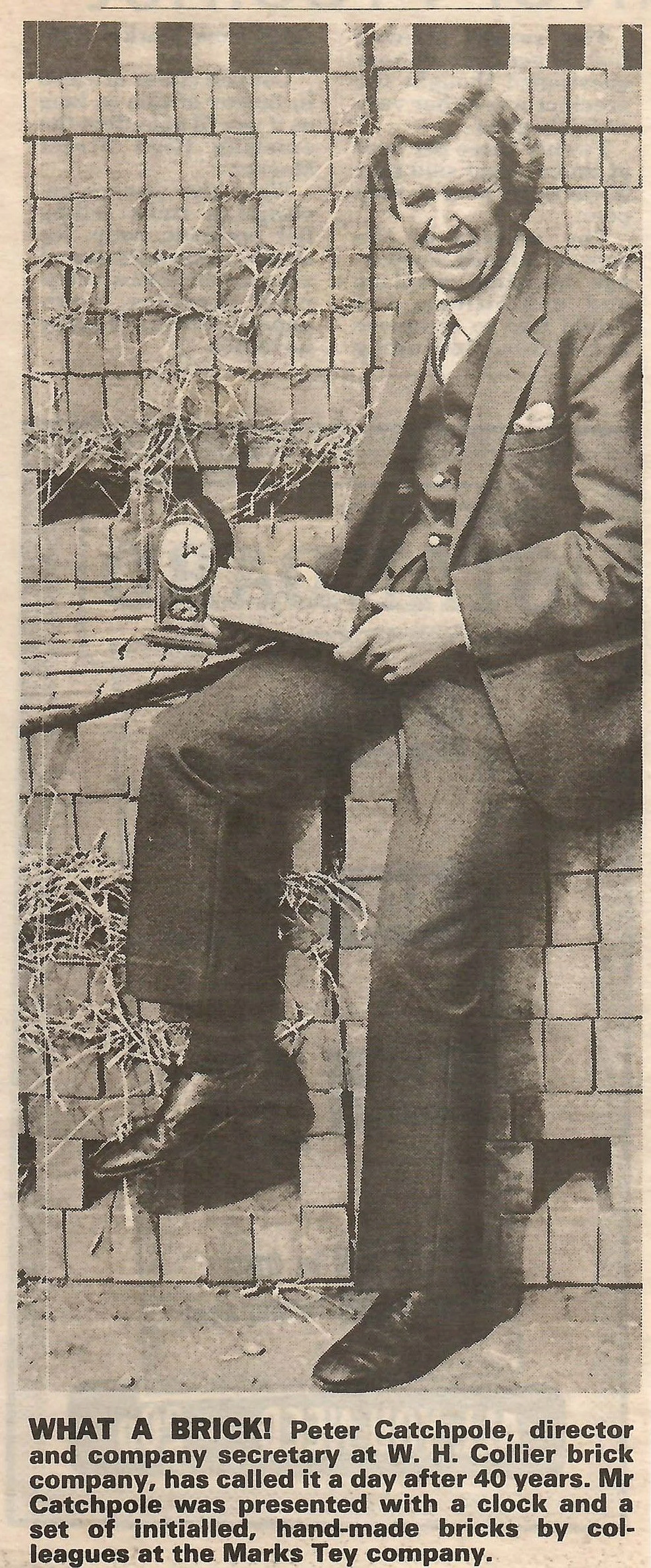 Newspaper photograph and report on the retirement of Peter Catchpole.