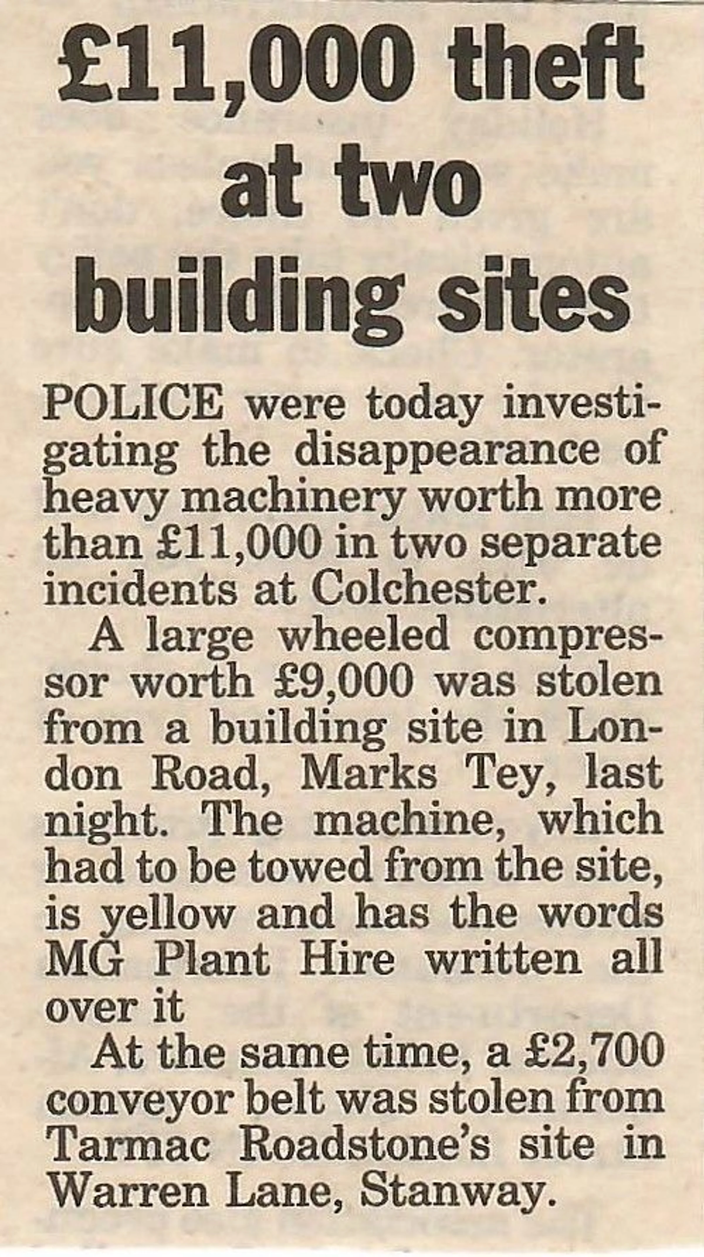 Newspaper report regarding a theft from a building site.