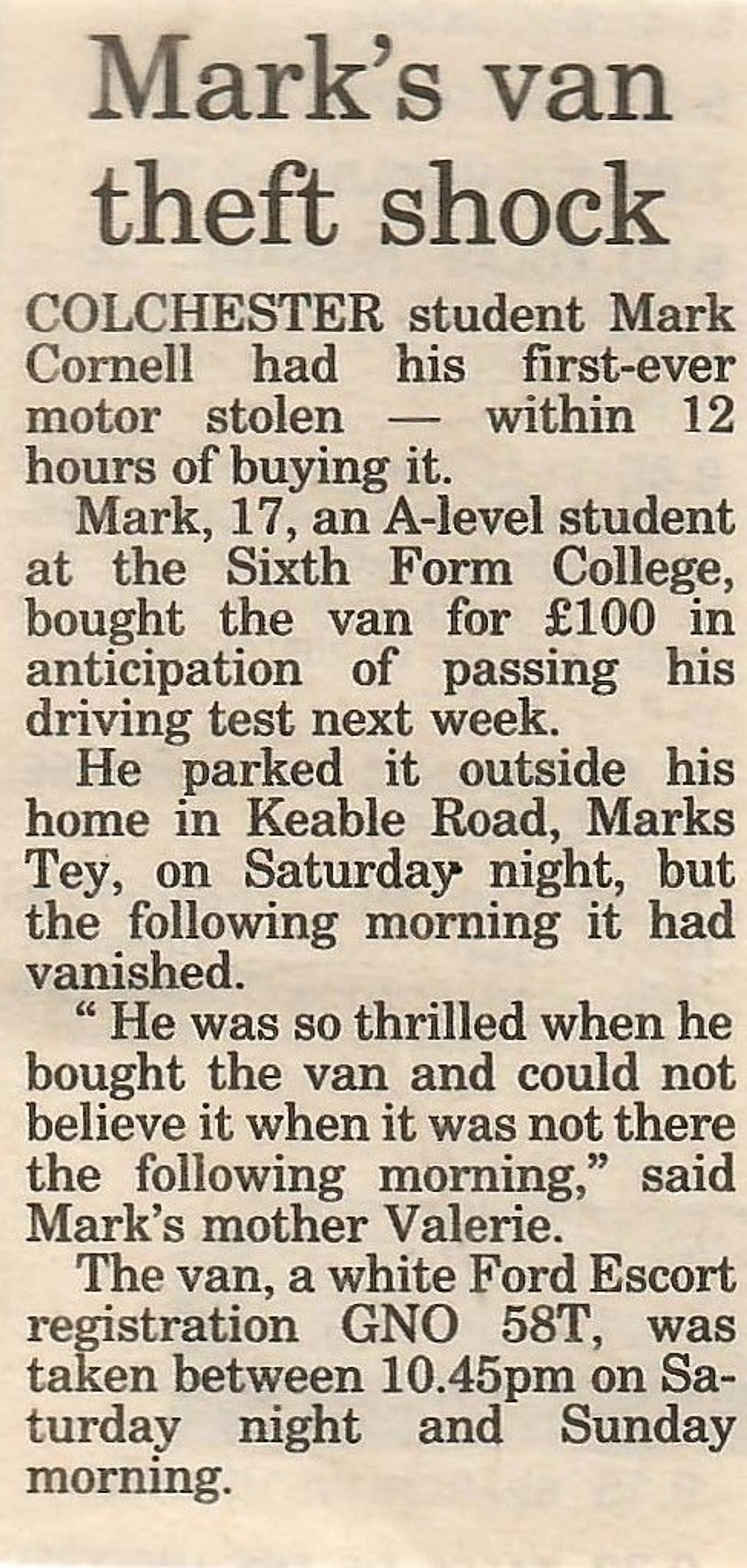 Mark's van theft shock