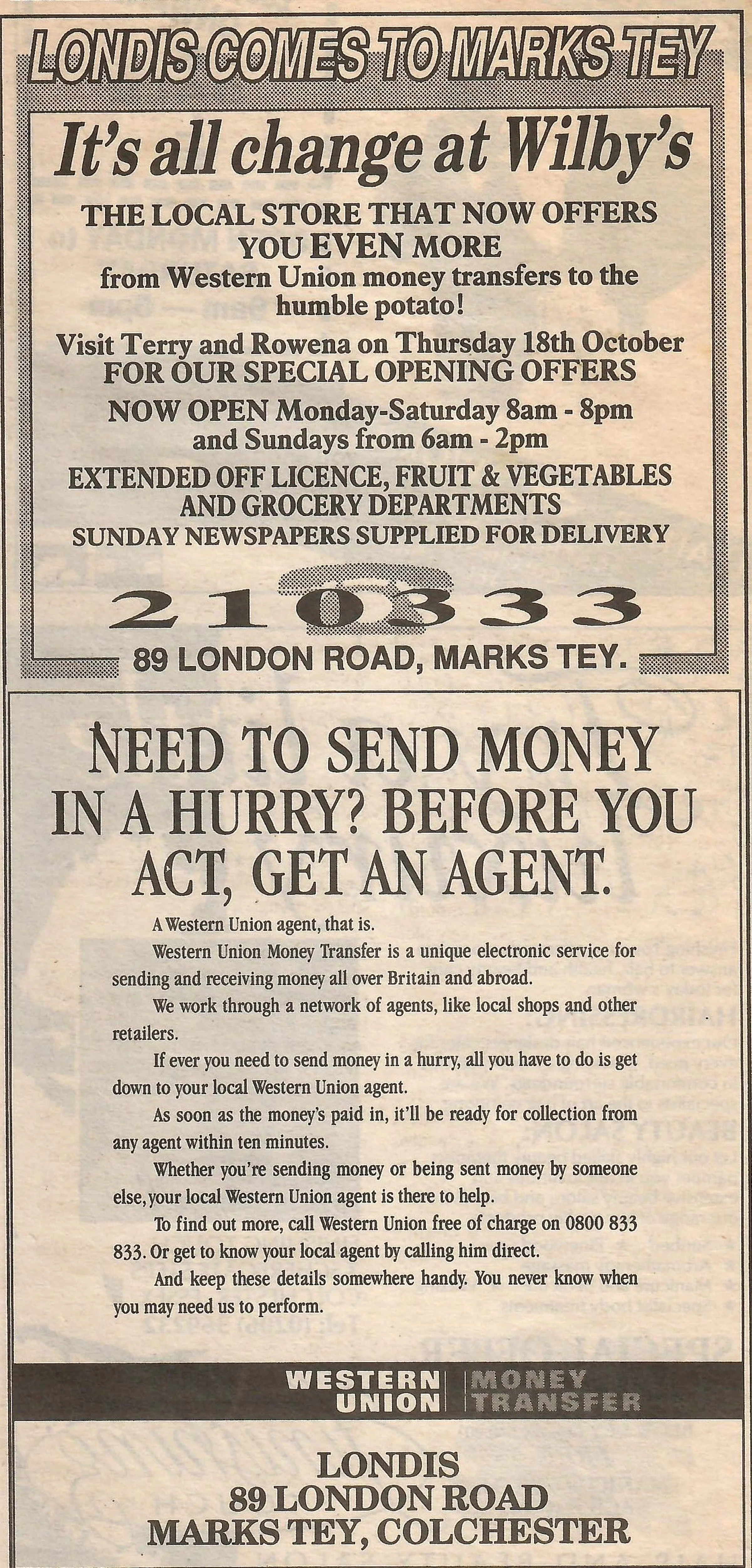 Newspaper advertisement for Wilby's shop changing to Londis.