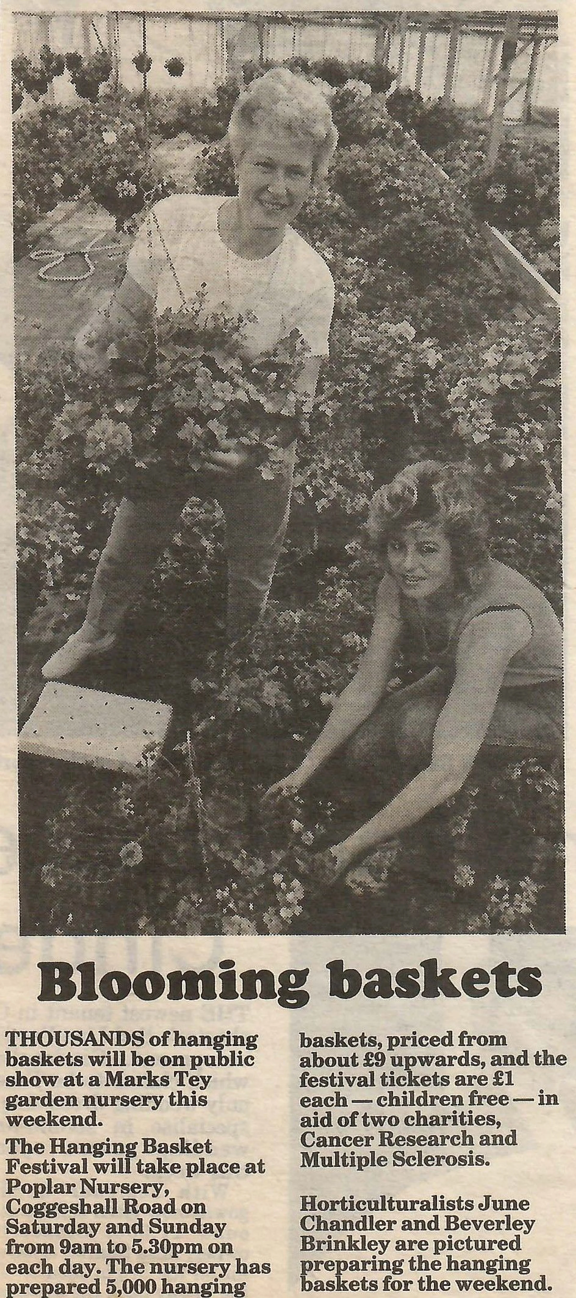 Newspaper photograph and report on the Hanging Basket Festival at Poplar Nurseries.