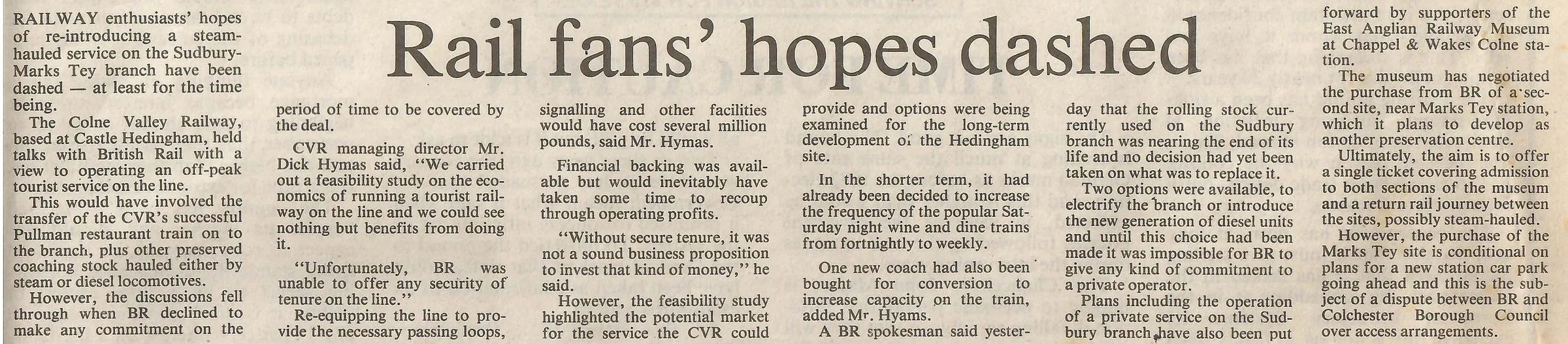Newspaper report regarding plans for a museum at Marks Tey Station.