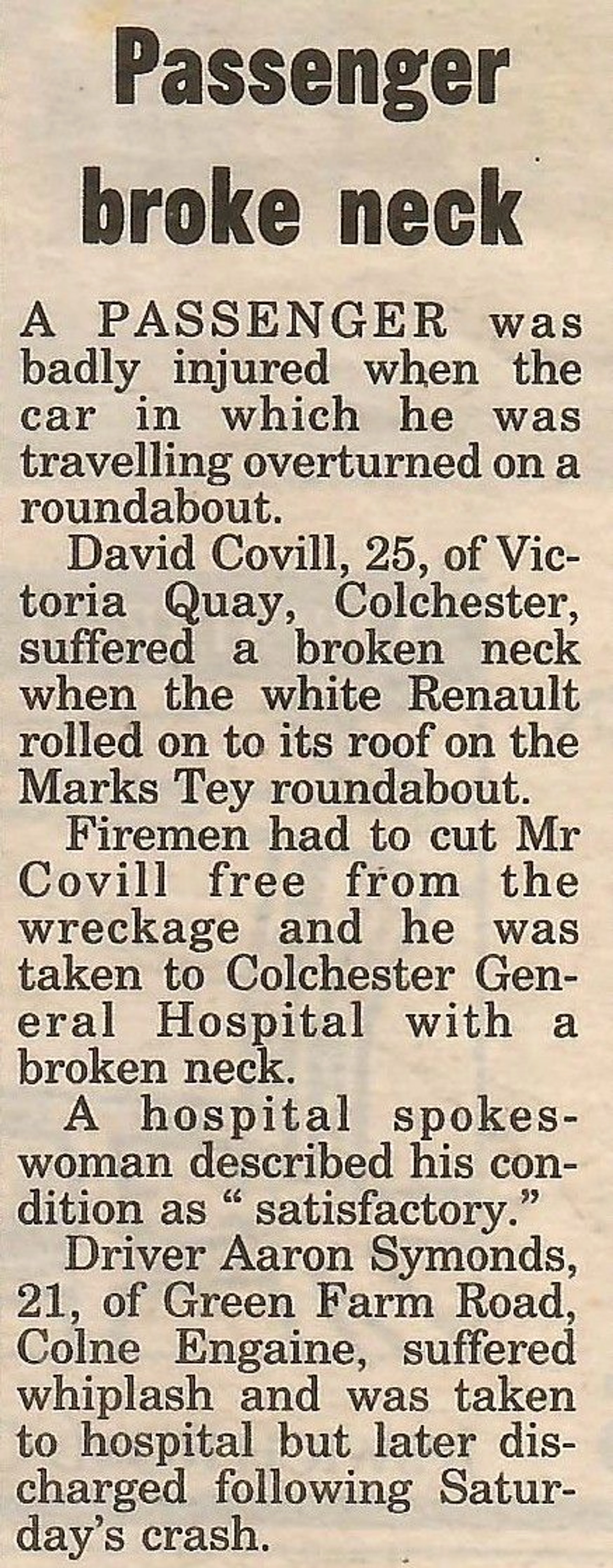 Passenger broke neck