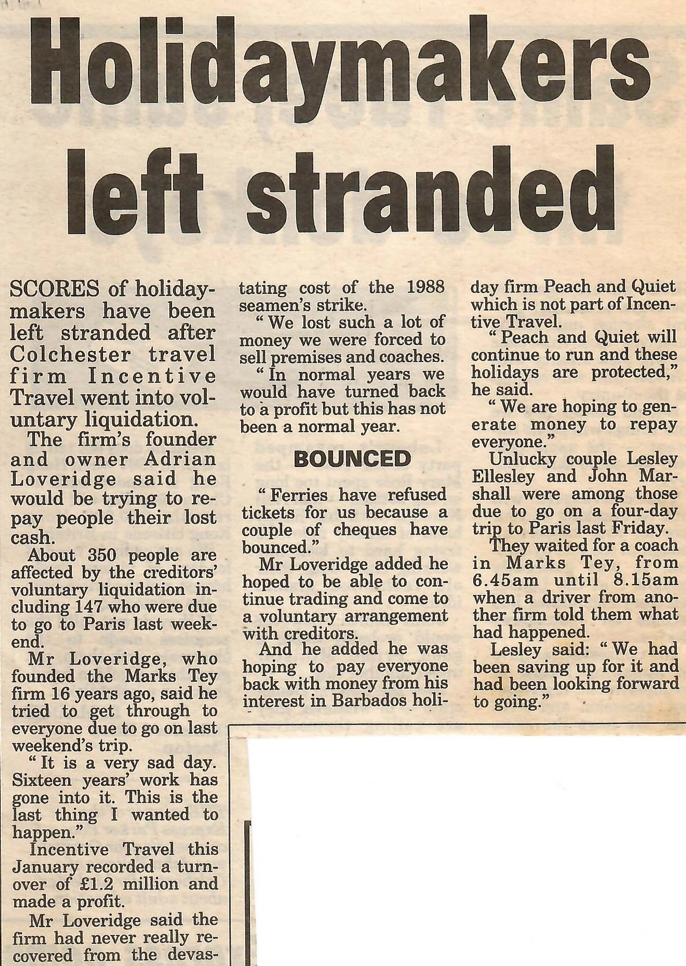 Newspaper report on the liquidation of the Incentive Travel firm.