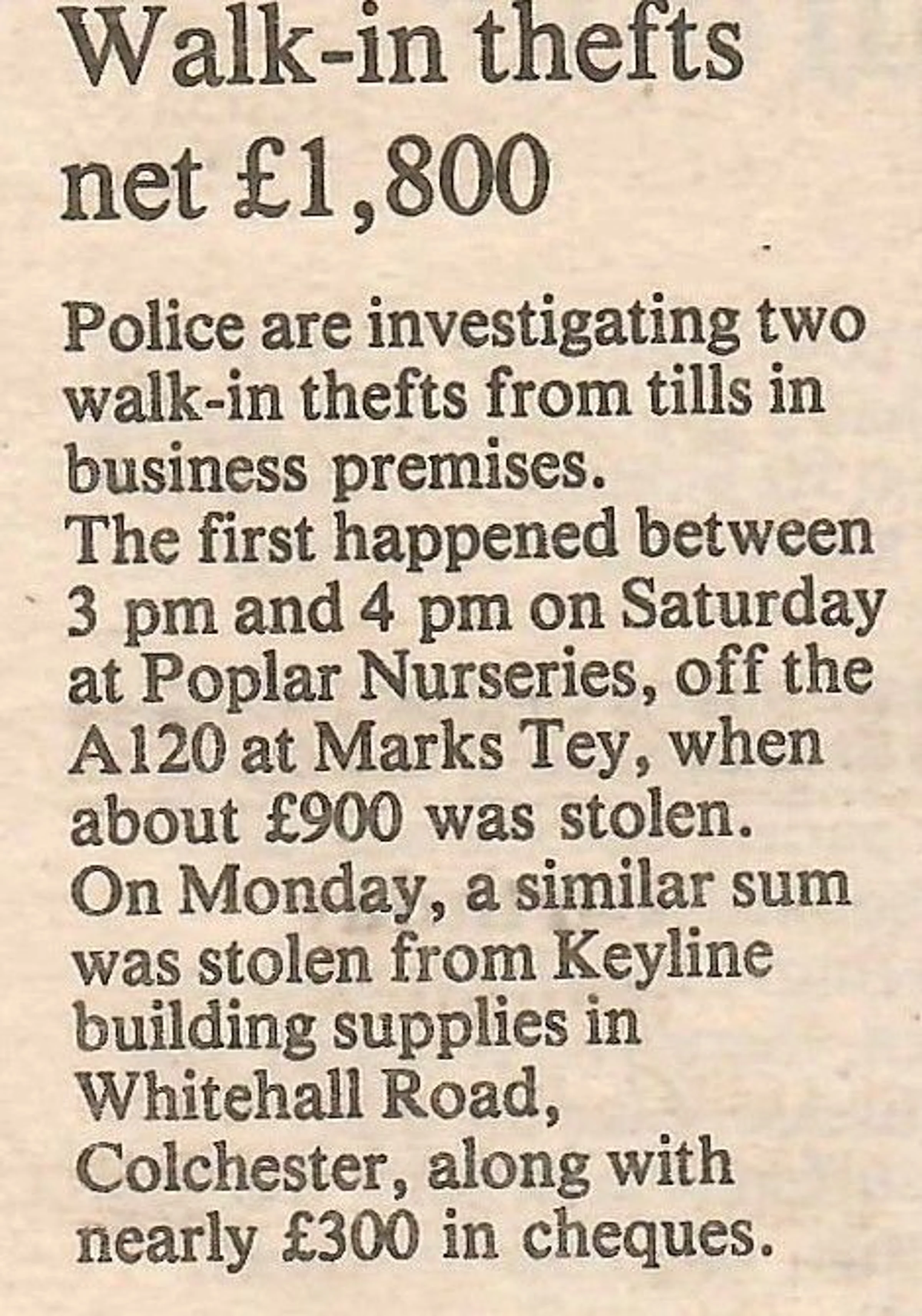 Newspaper report on a theft at poplar Nurseries.