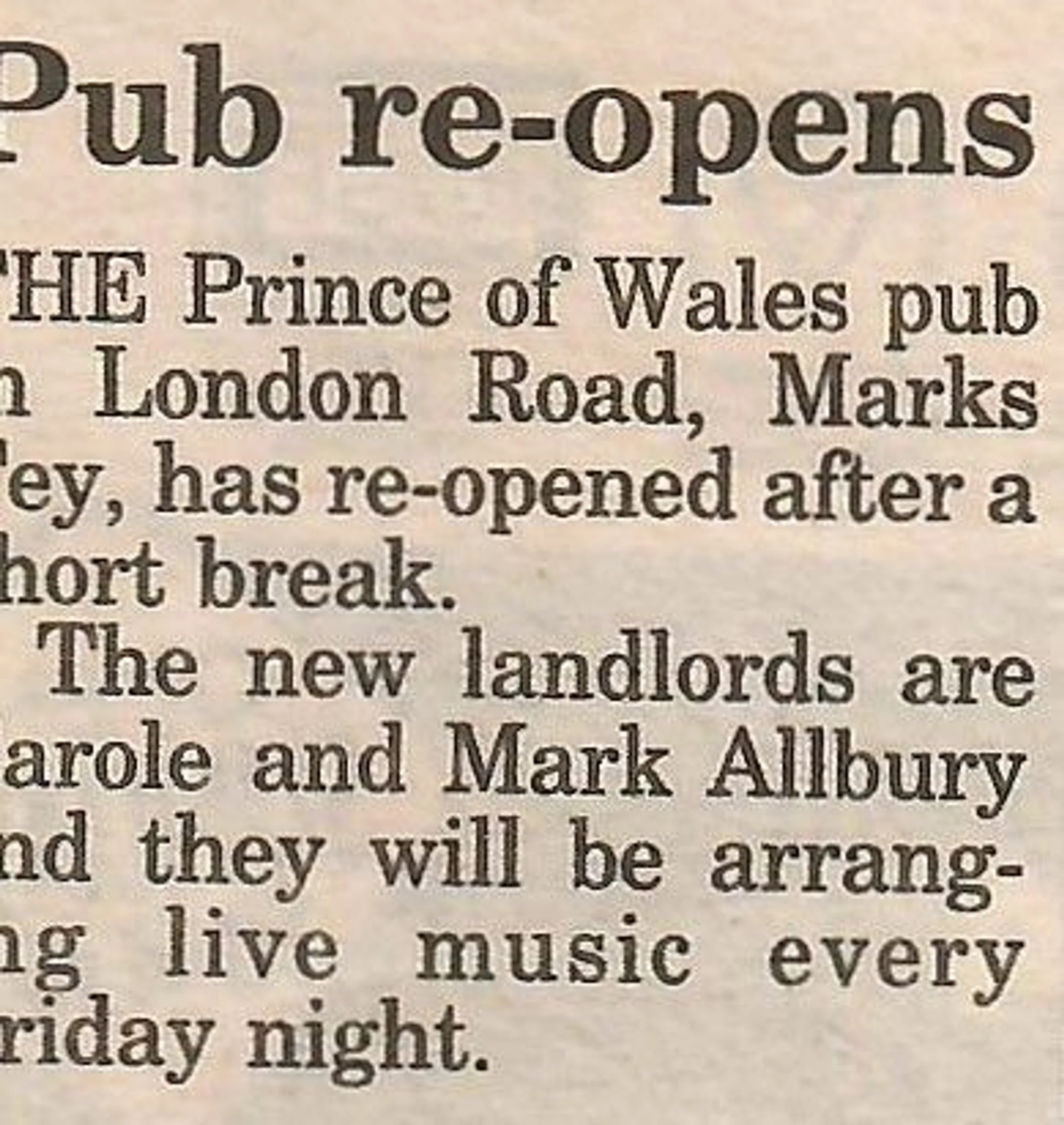 Newspaper report on the reopening of the Prince of Wales public house with new landlords.