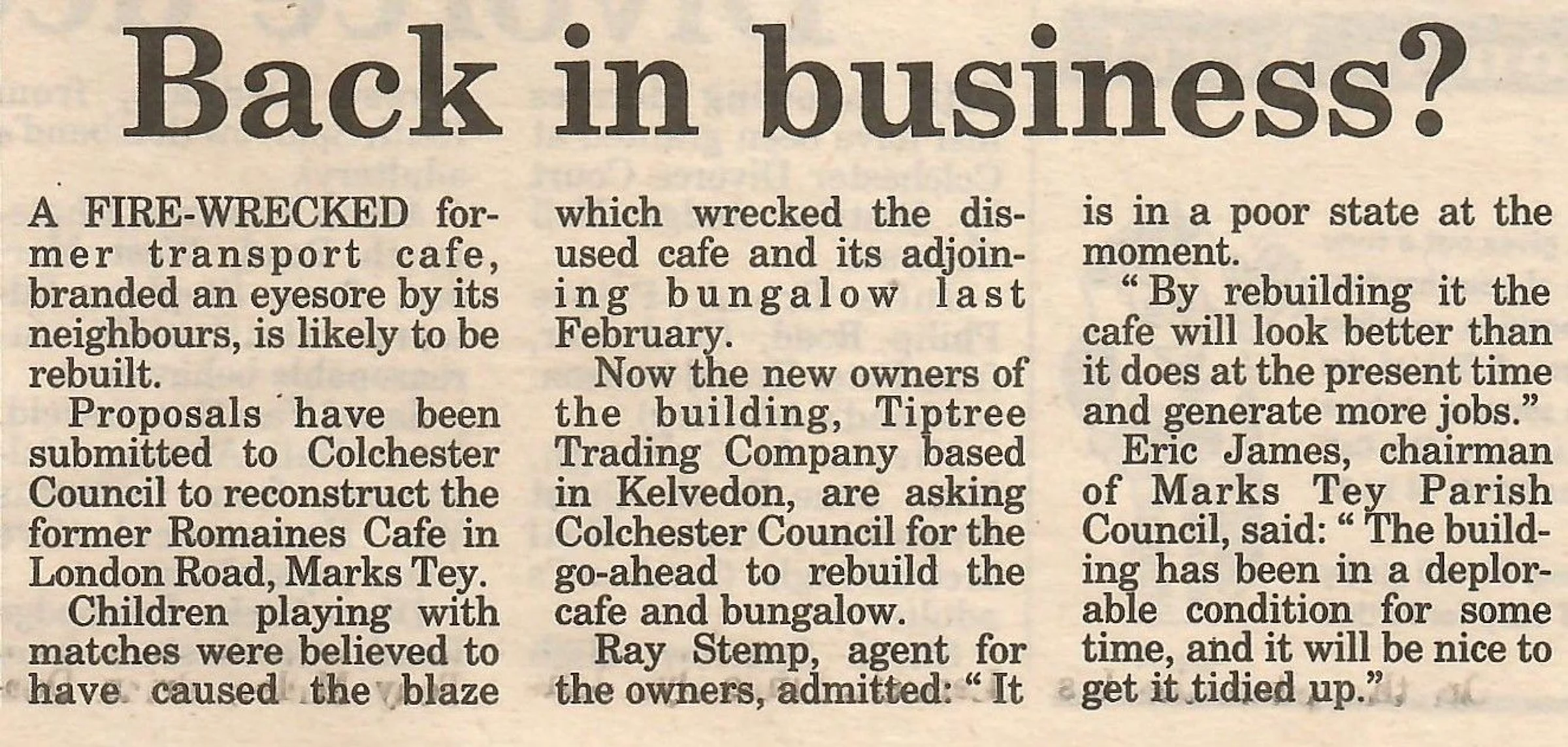 Newspaper report on planning proposals on the site of Romaines Cafe.