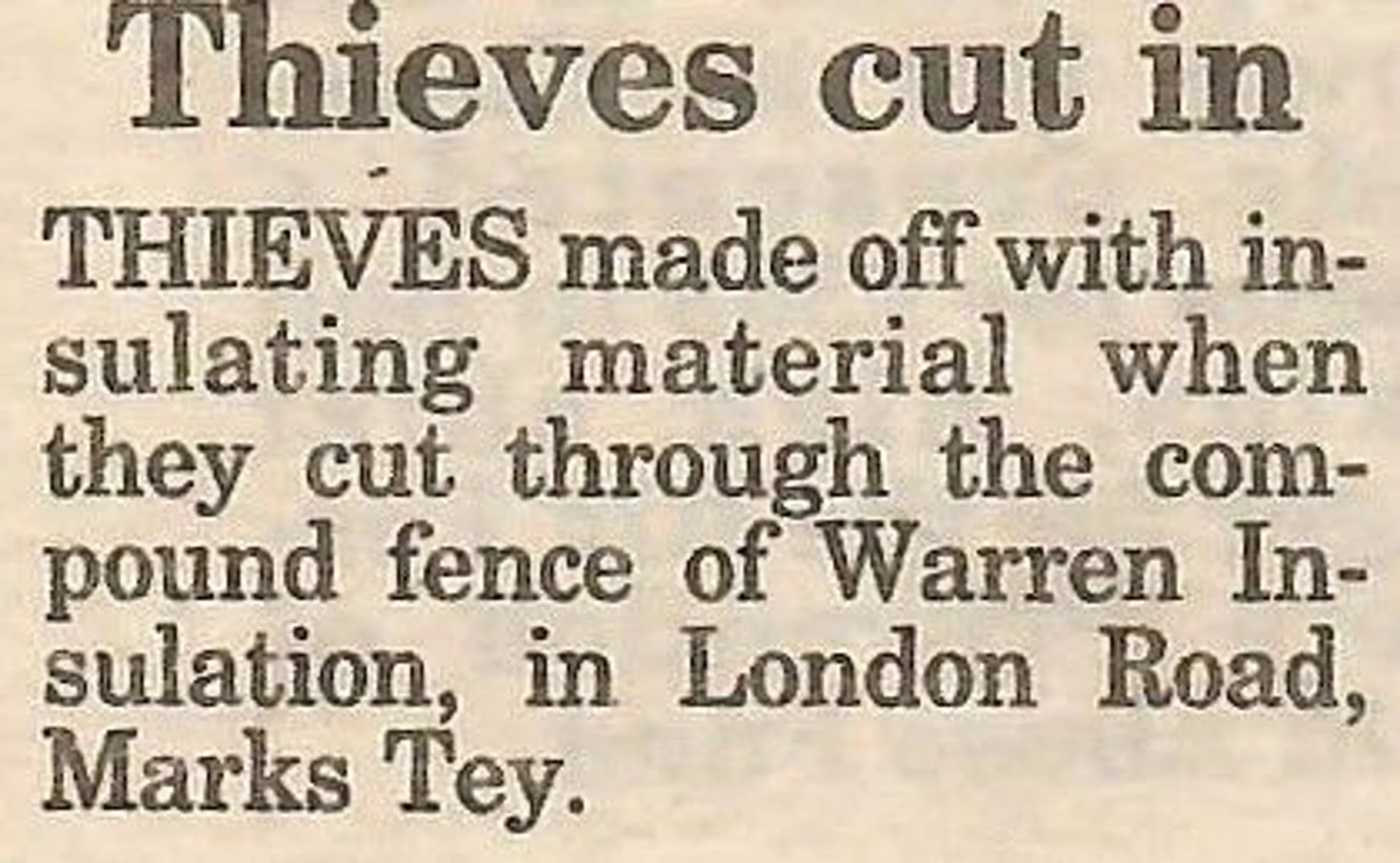 Newspaper report on a theft from Warren Insulation.