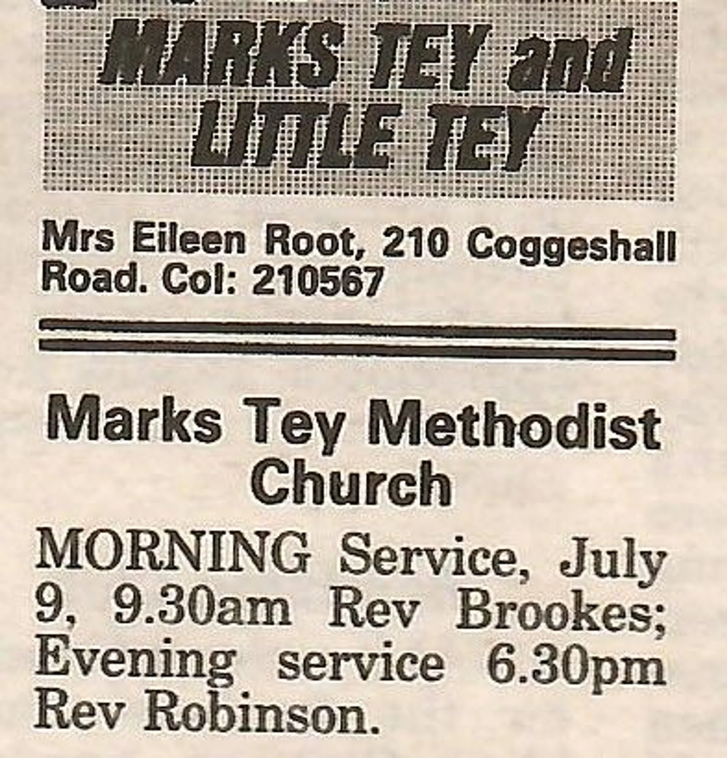 Village news column regarding Methodist Church services.