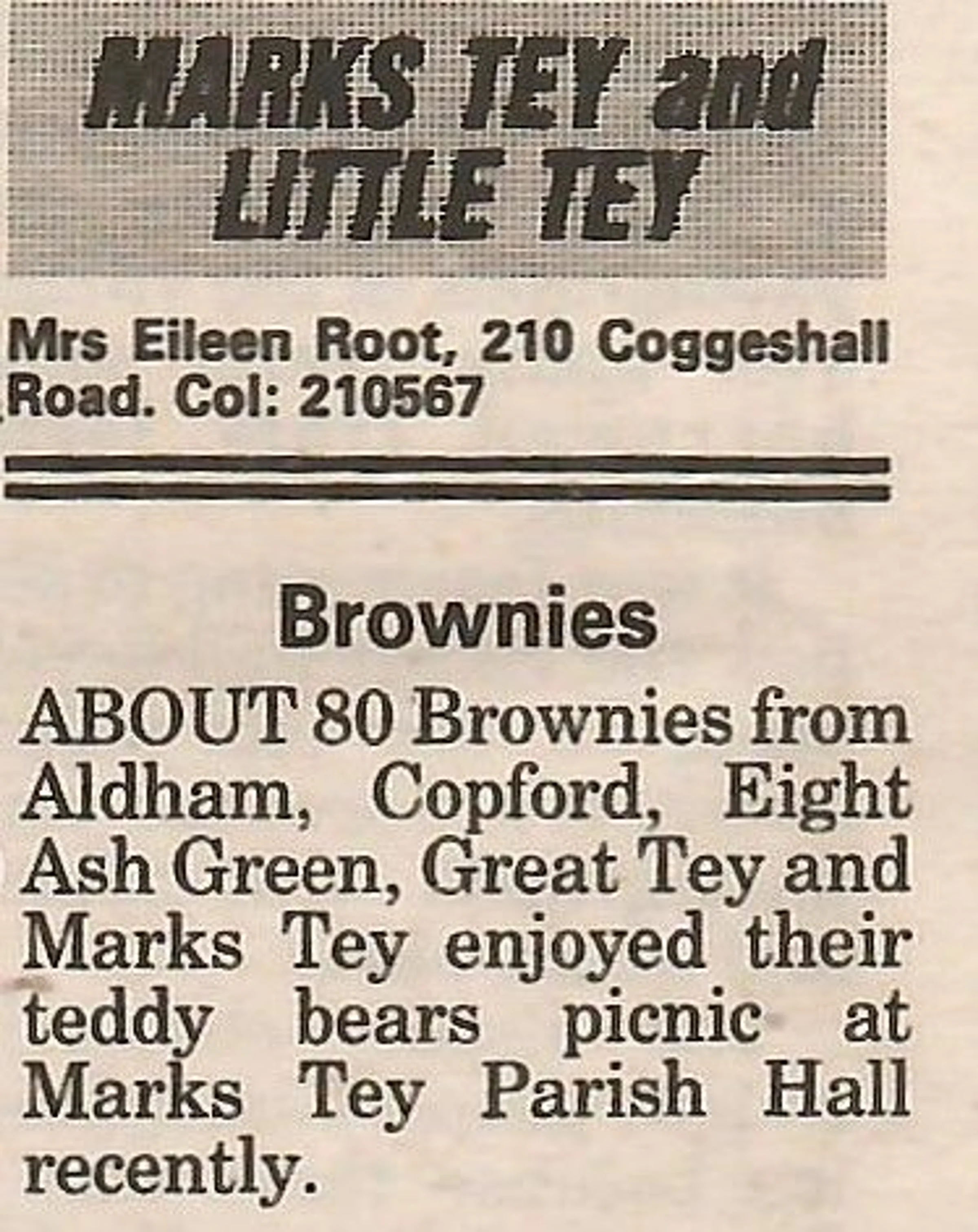 Village news column reporting on the Brownies' teddy bears picnic.
