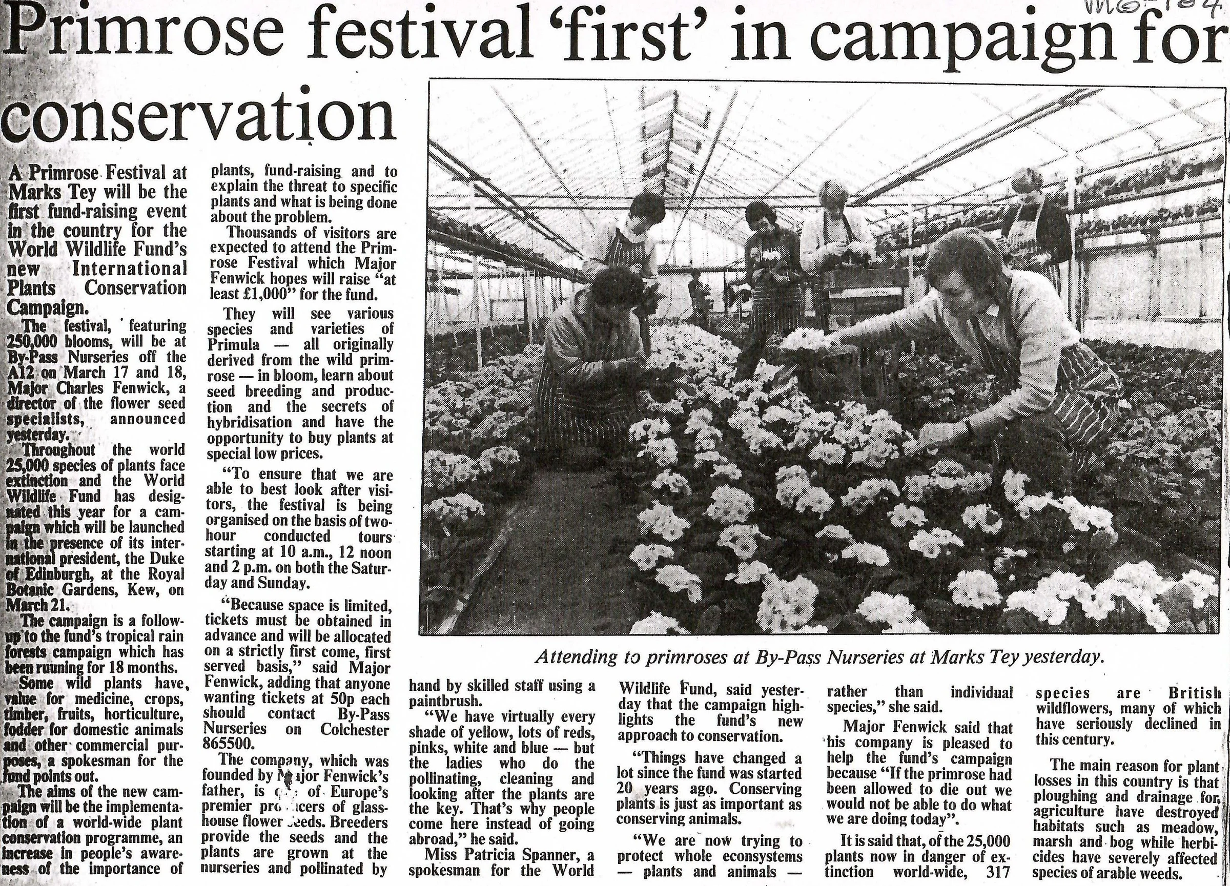 Newspaper photograph and report on the primrose festival at By-pass nurseries.