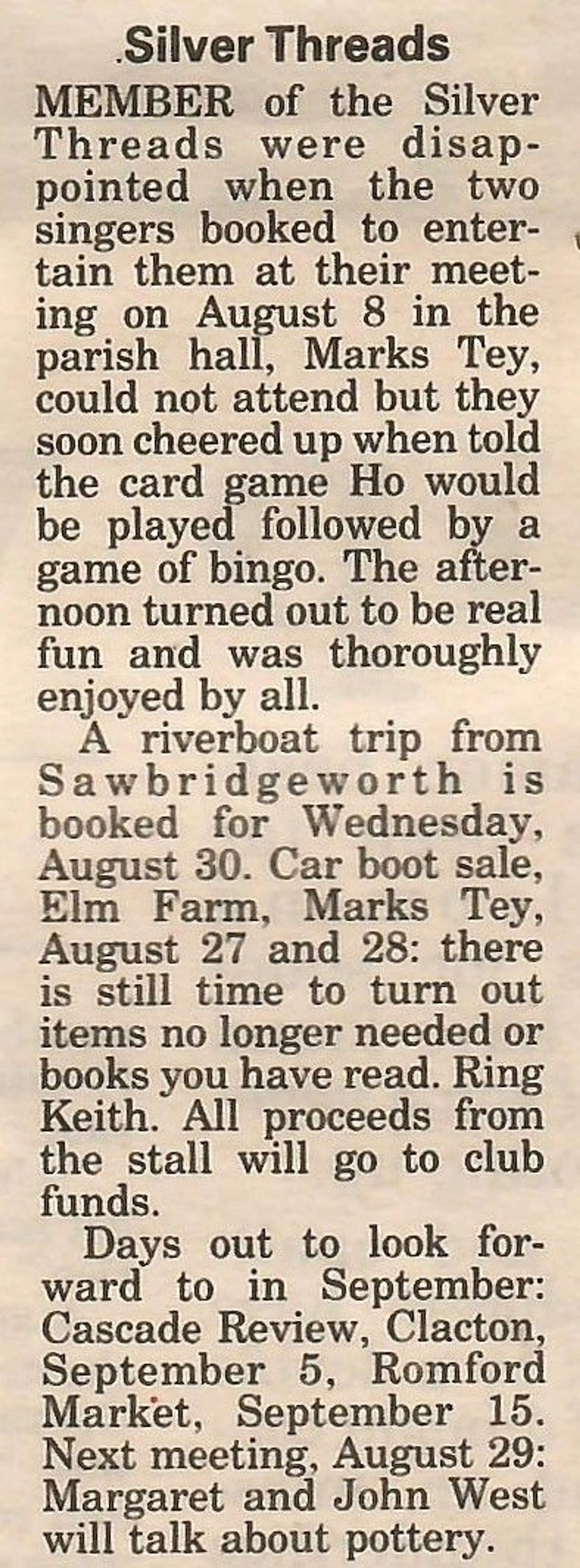 Village news column reporting on the Silver Threads.