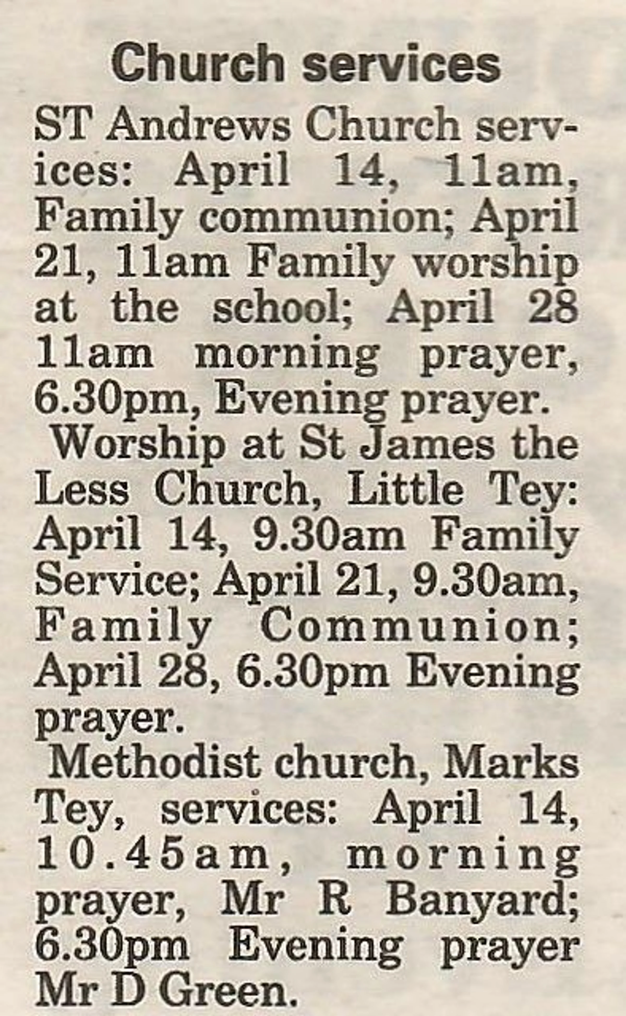 Village news column regarding church services.