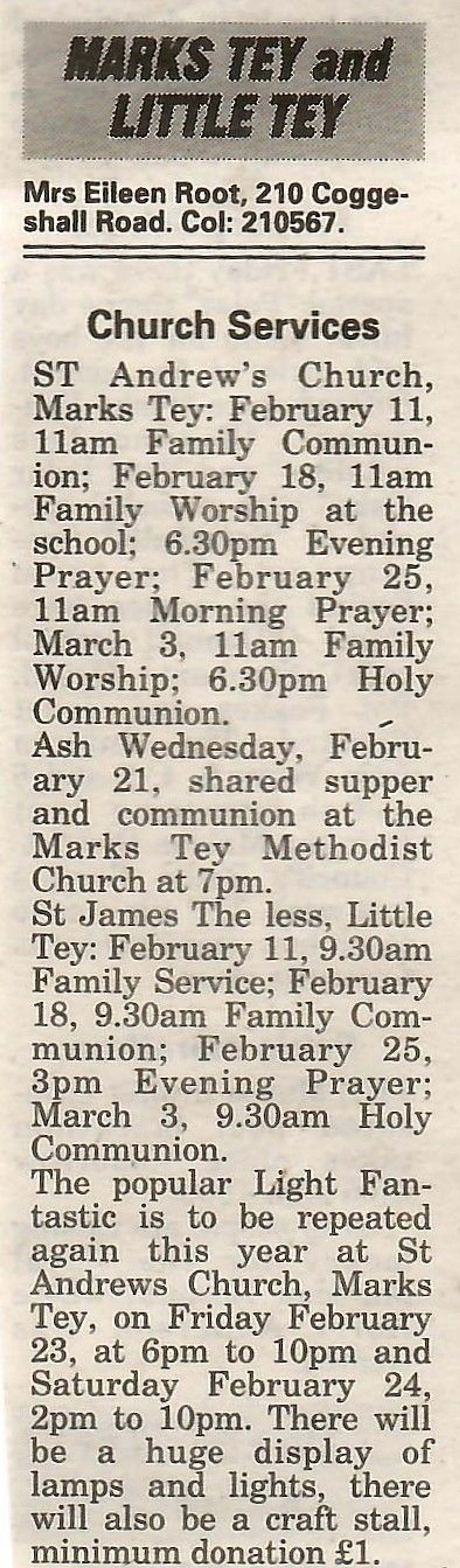 Village new column regarding church services.