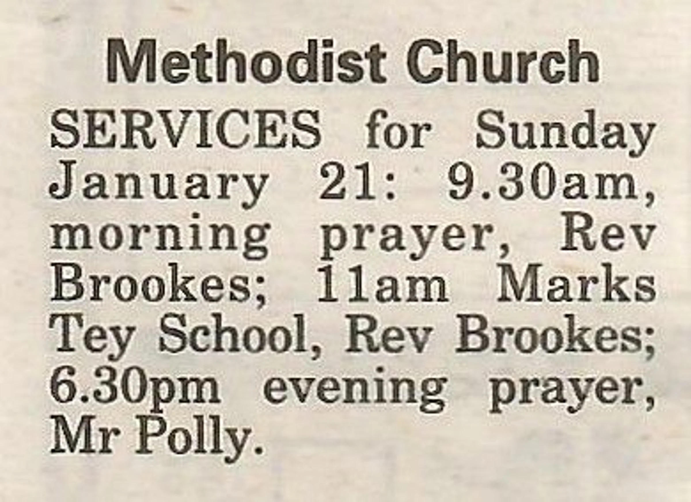 Village news column regarding Methodist Church services.