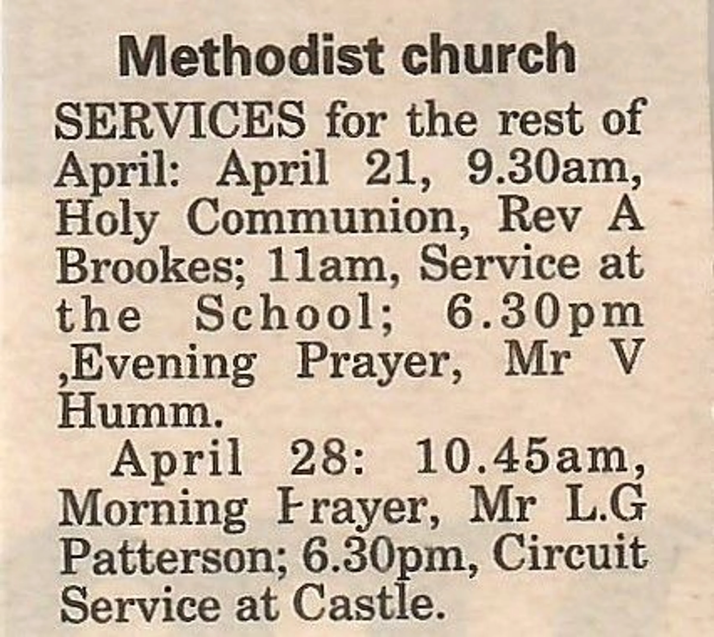 Village news column regarding Methodist Church services.