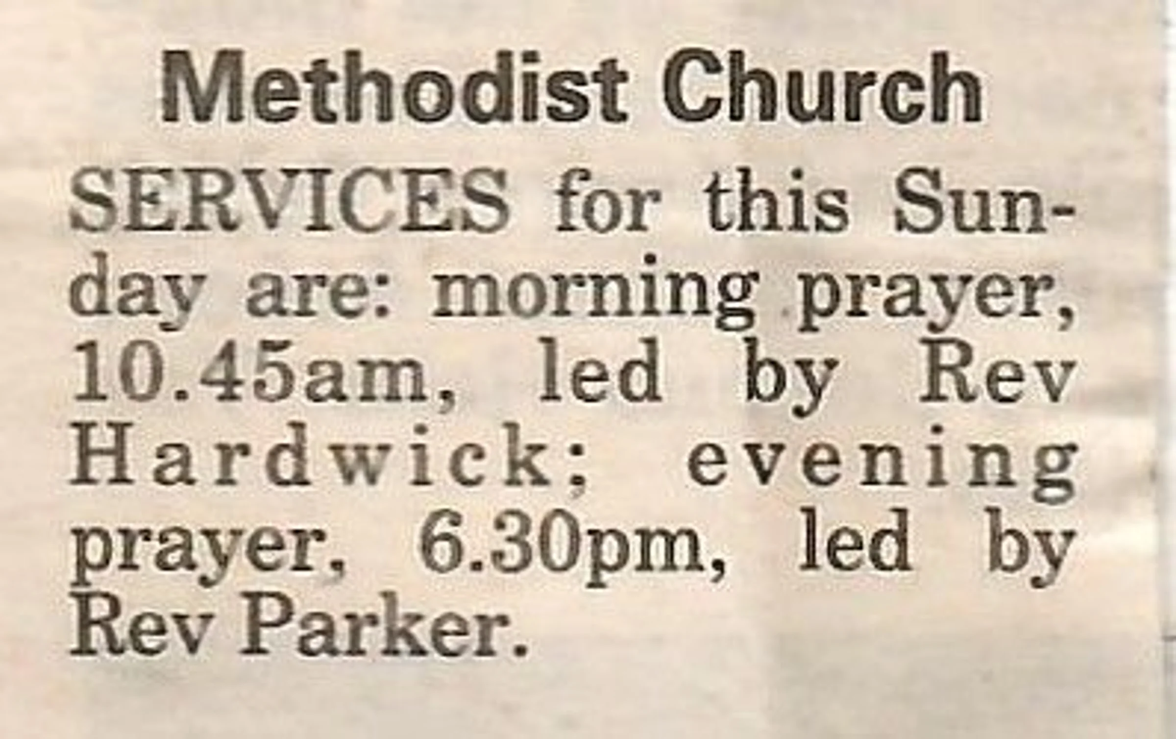Village news column regarding Methodist Church services.