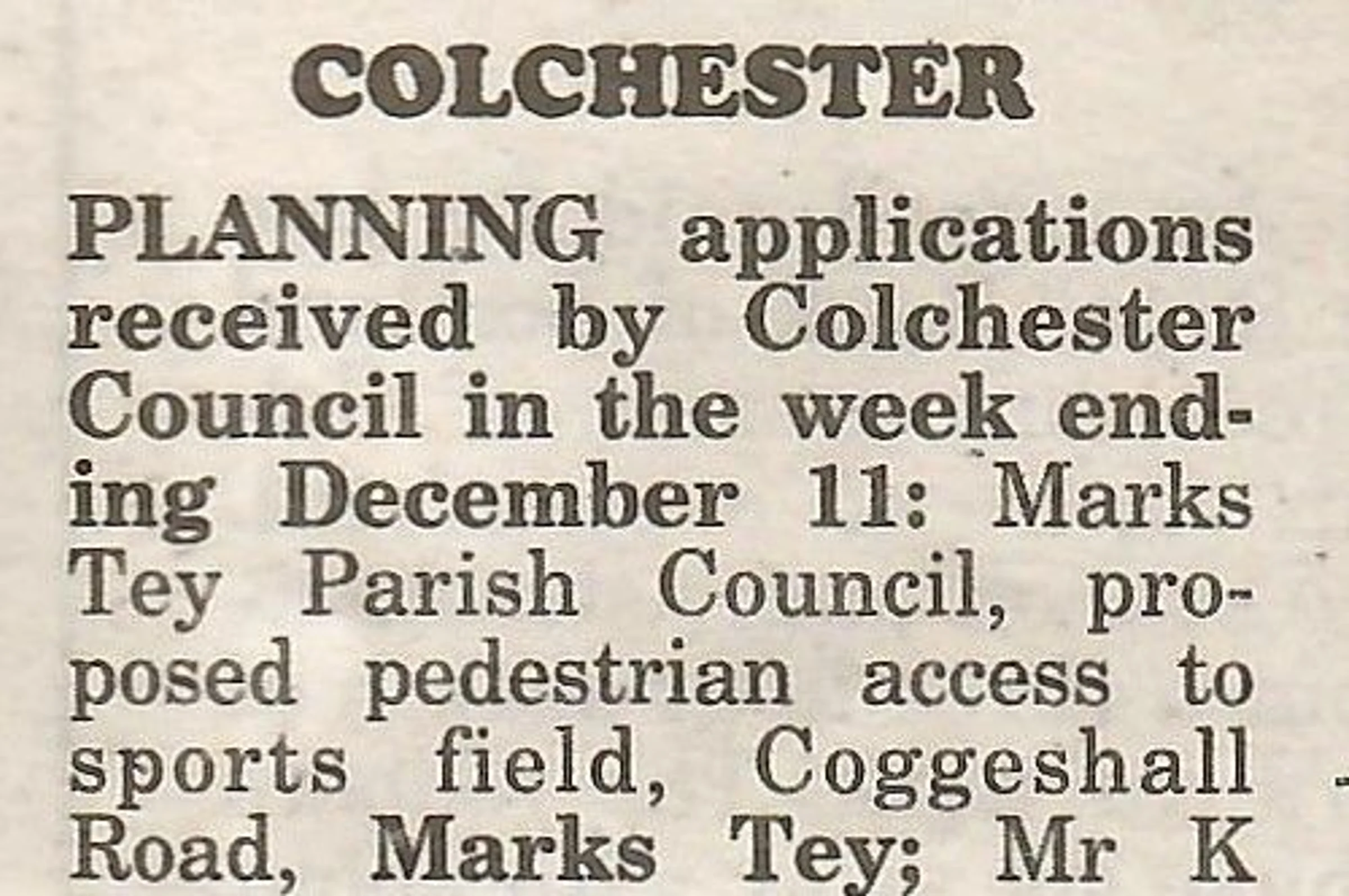 Newspaper report regarding a planning application for pedestrian access to a sports field.